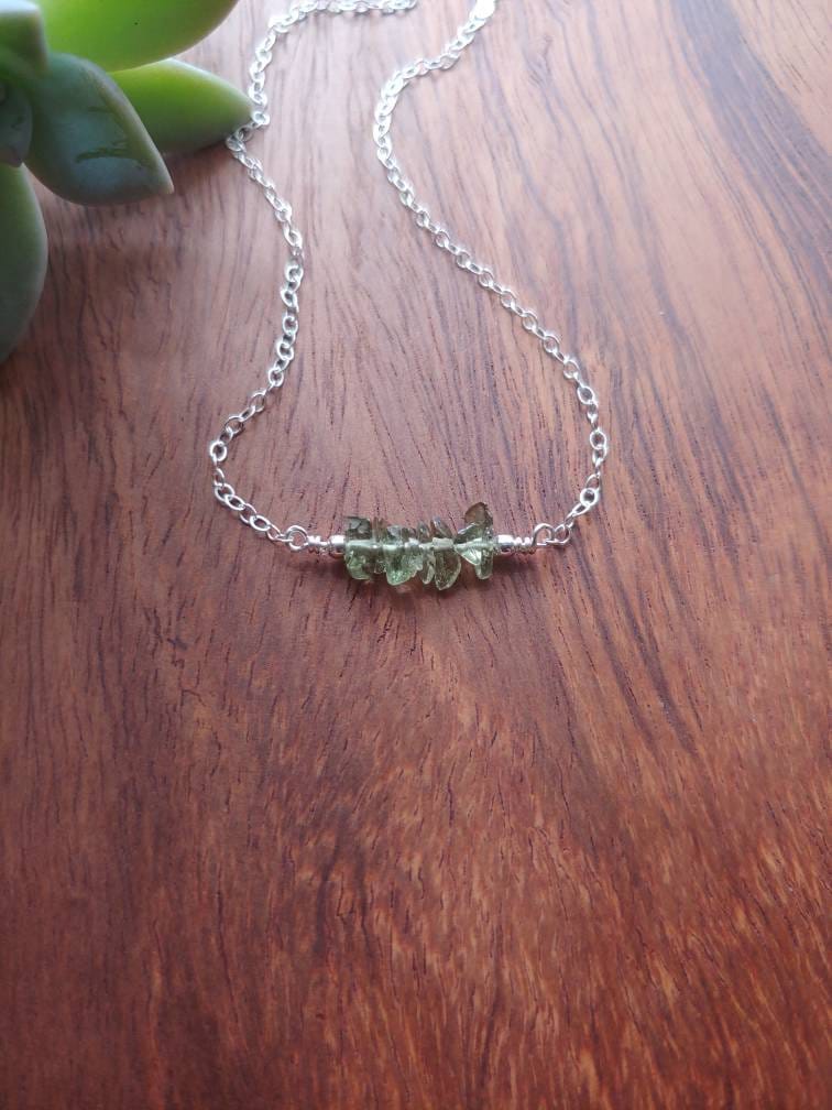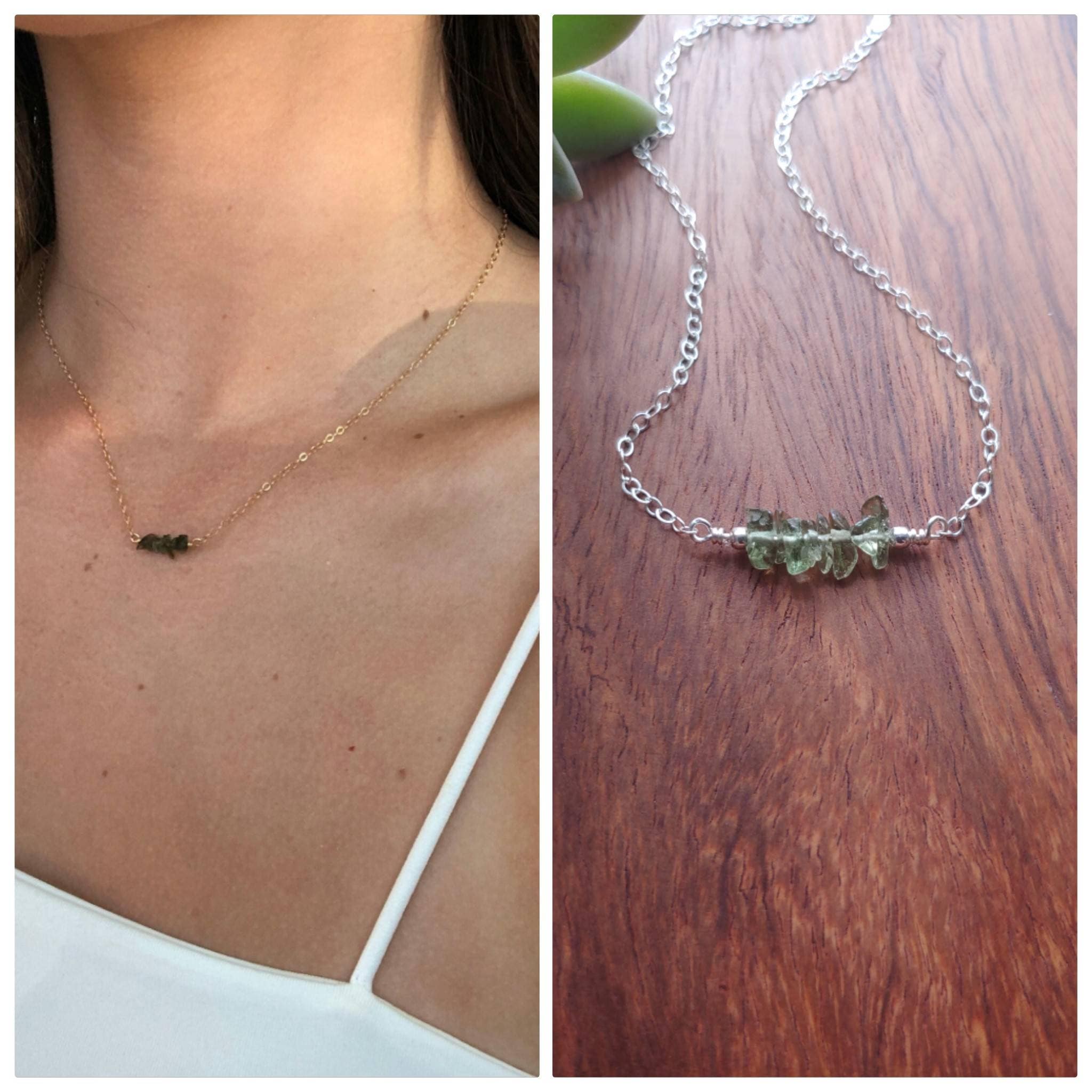 Tumbled chipped Moldavite necklace in gold filled, rose gold and Sterling silver. REAL moldavite gemstones hand wired with love.