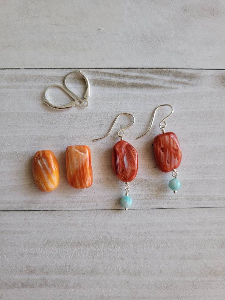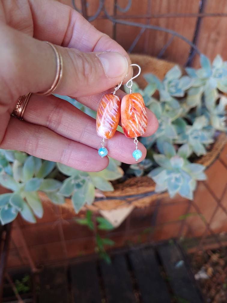 Colorful spiny oyster and blue amazonite earrings elegantly wired with love❤