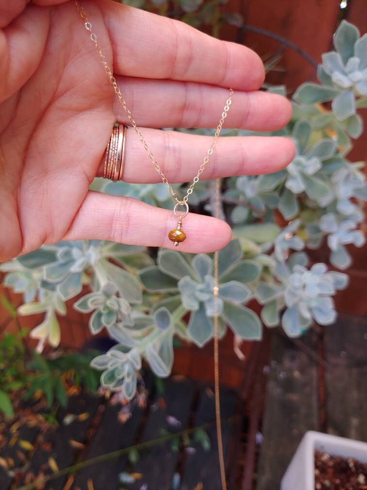 Dainty and sweet faceted tiger's eye gemstone available in a pendant only if you want to add to your favorite necklace or you can order with the chain!!