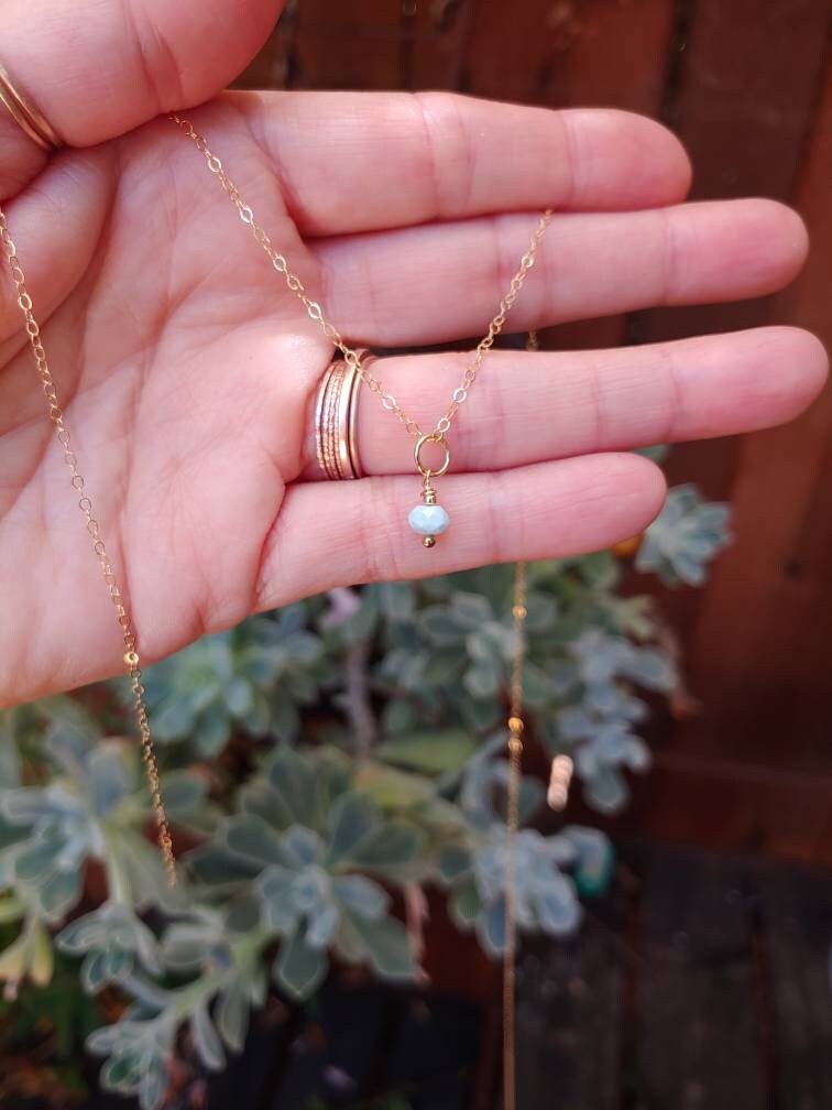 Dainty and sweet faceted larimar gemstone available in a pendant only if you want to add to your favorite necklace or you can order with the chain!!