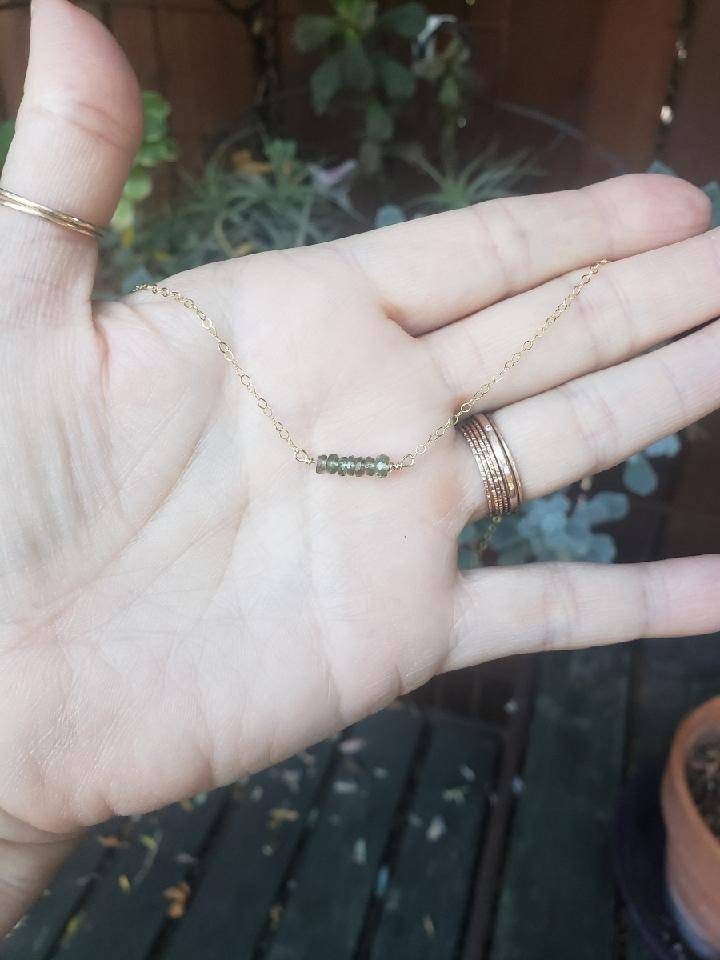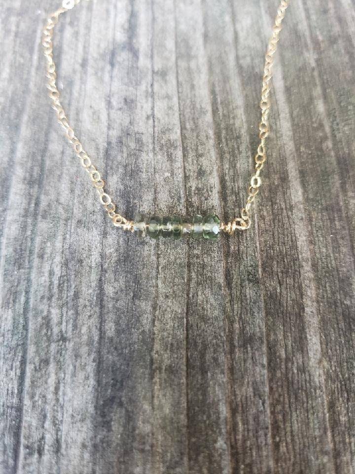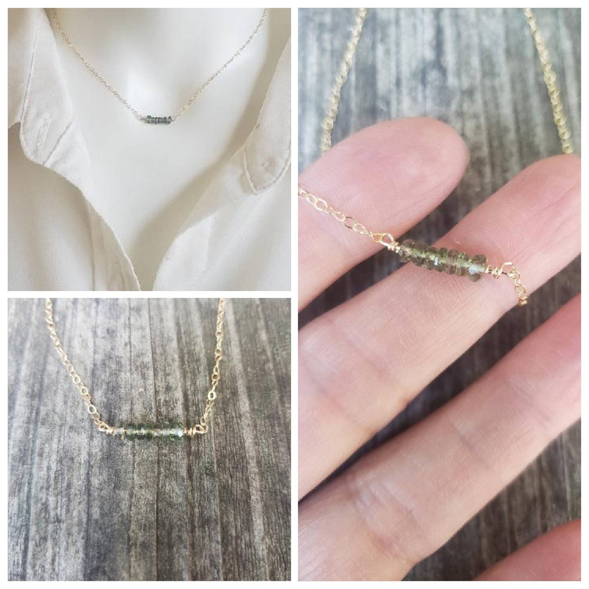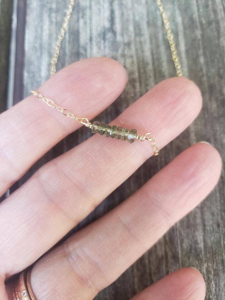If you love dainty, you will love this moldavite necklace in gold filled, rose gold and Sterling silver. REAL moldavite gemstones hand wired with love.