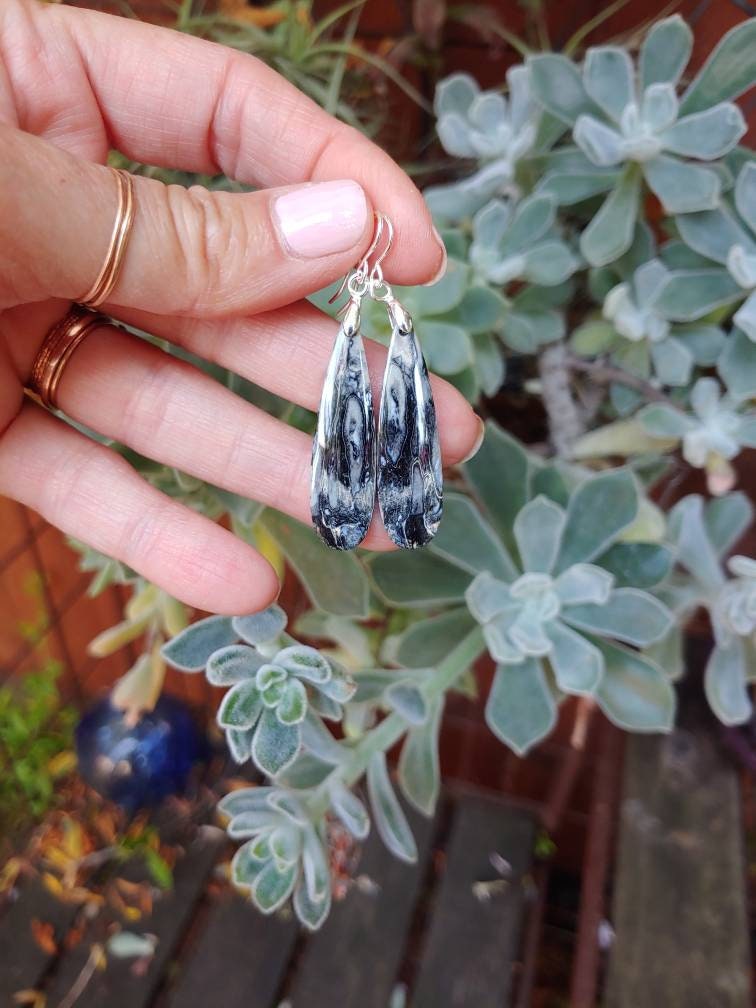 Unique petrified wood earrings. These dangle approx 2 inches from earlobe.