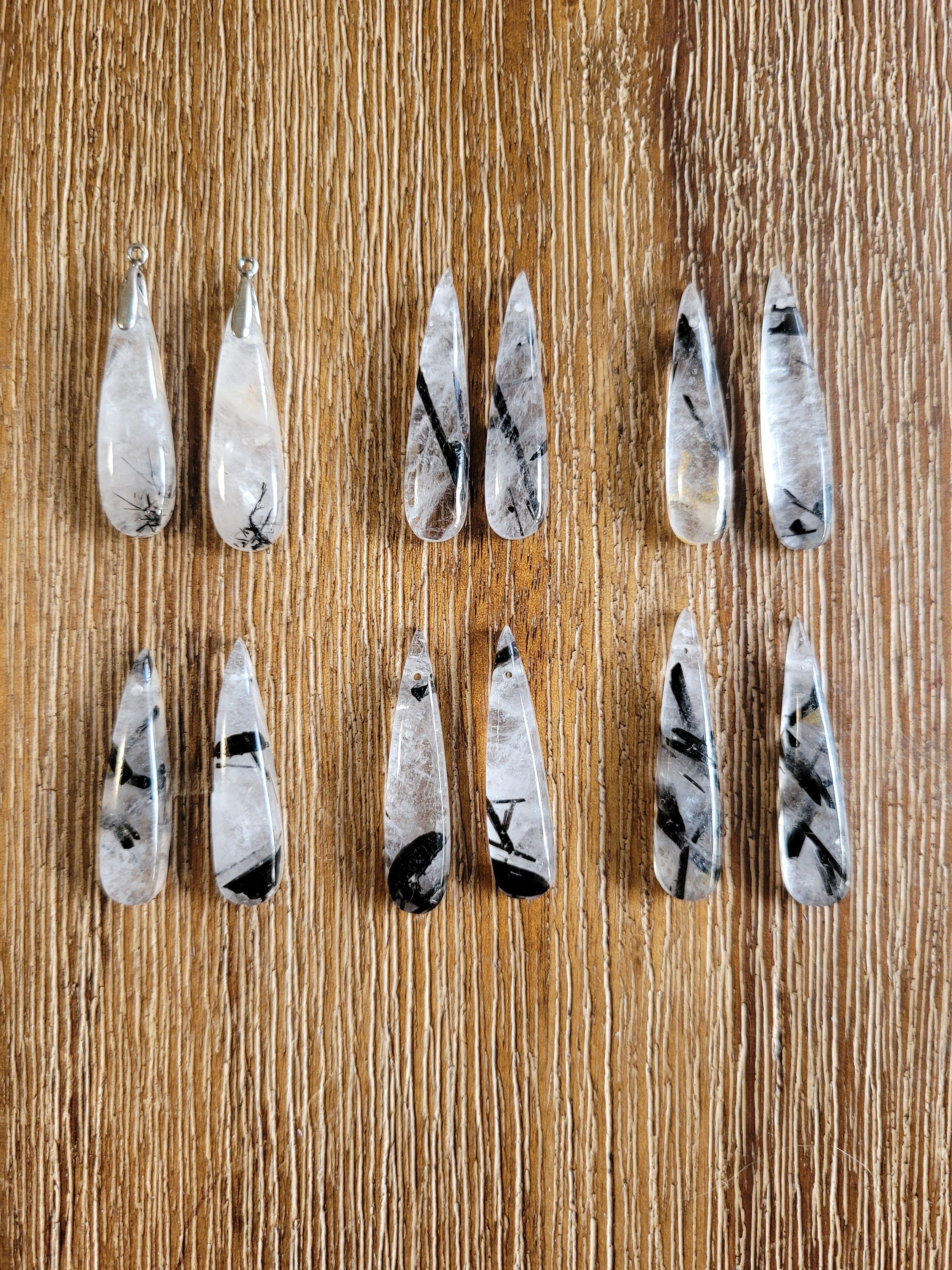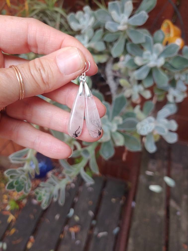 Bold and beautiful these long black tourmaline rutilated quartz earrings dangle approximately 2 inches from the earlobe.