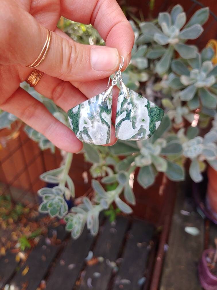 Gorgeous green, blue and soft white hues in this pair of earrings. Avail in sterling silver only