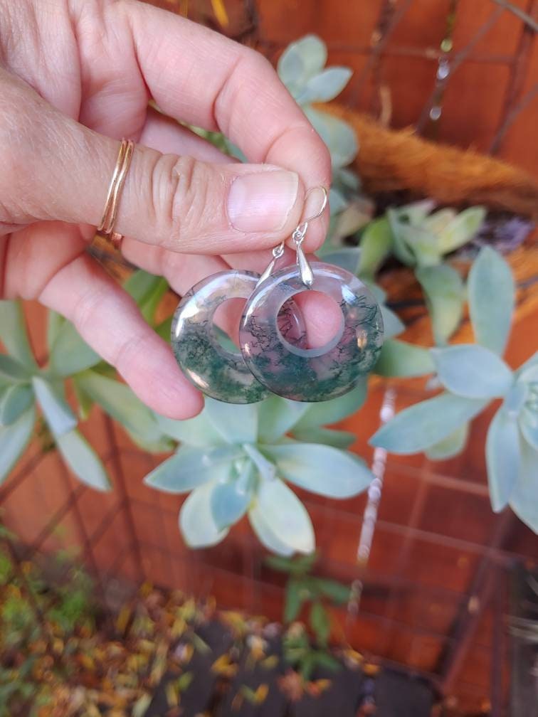 These are real green moss agate and has a beautiful green and cream hues that moss agate offers! Made with love with perfectly imperfect wire wrapping