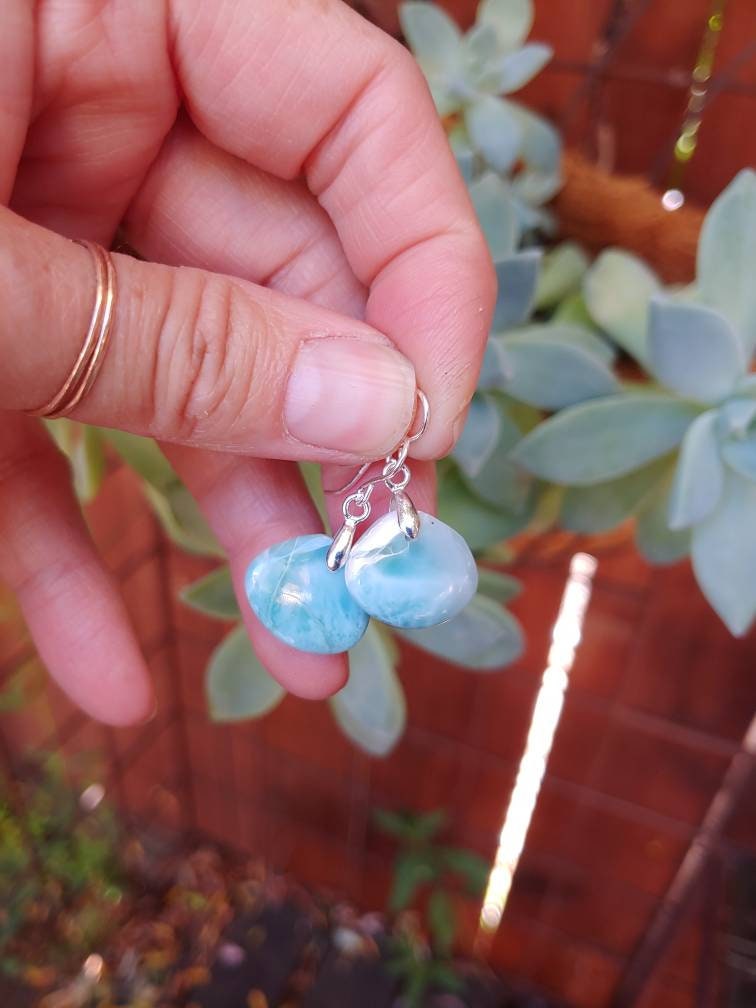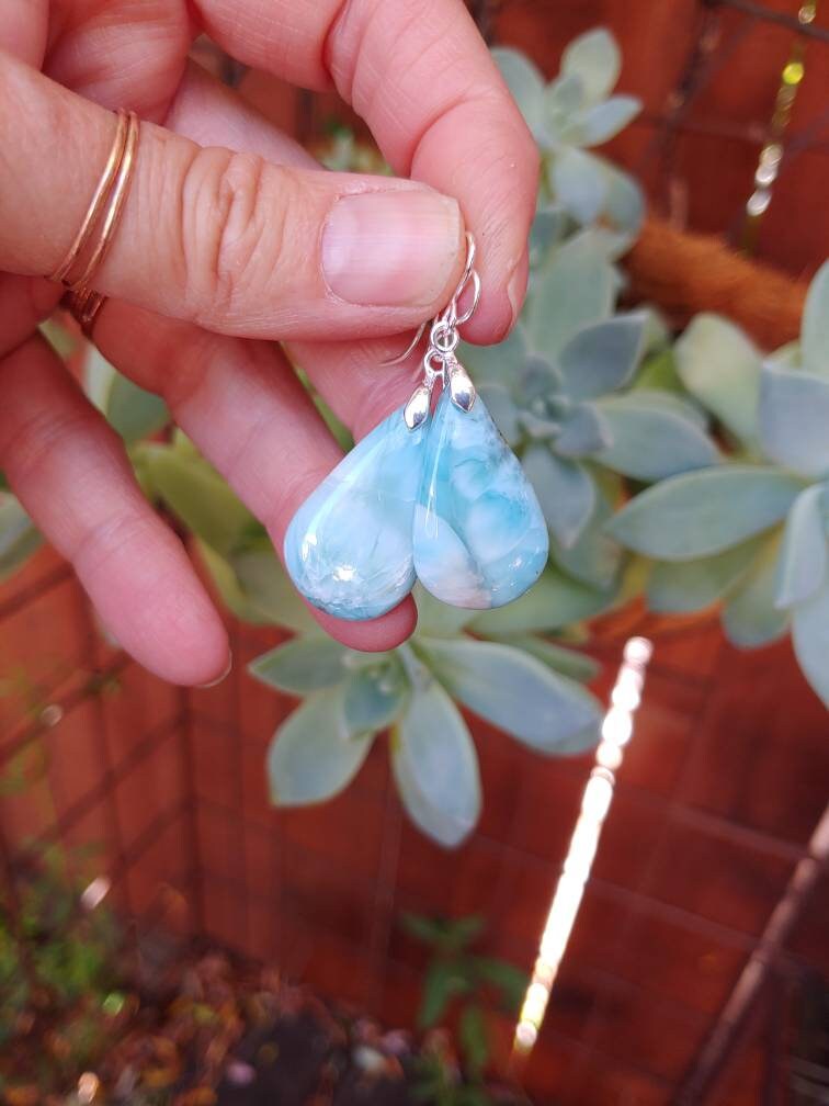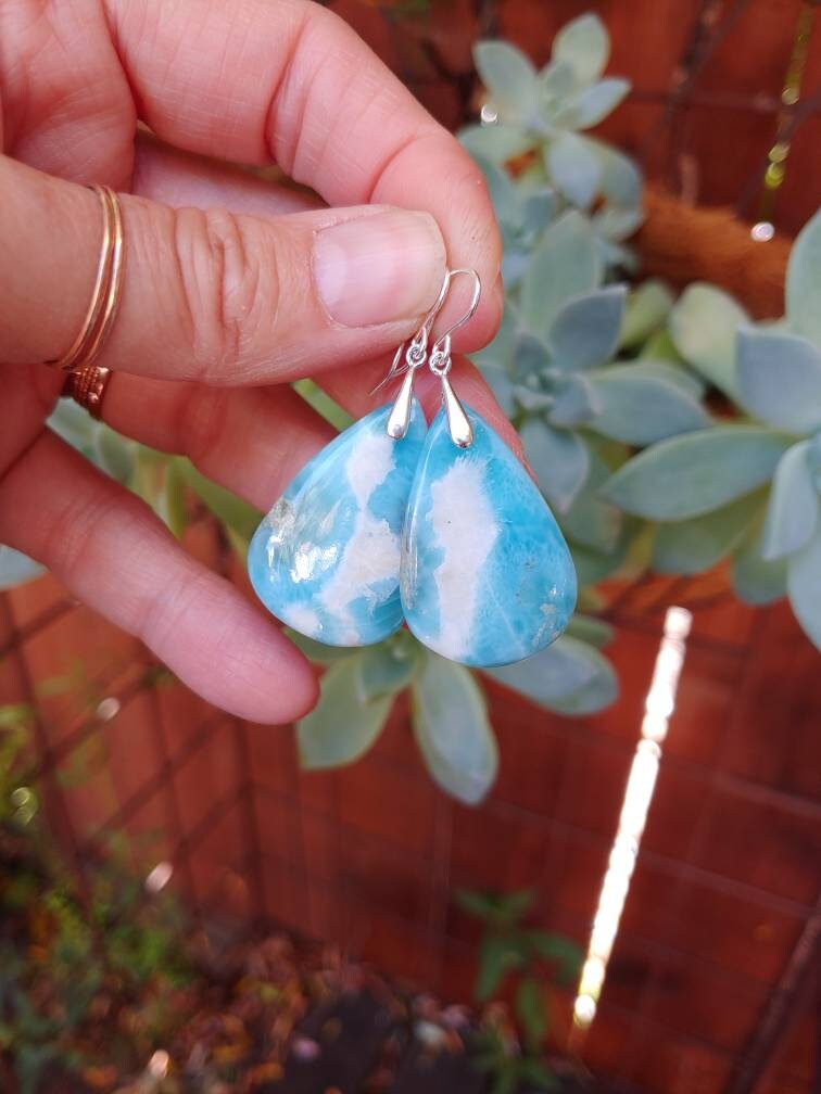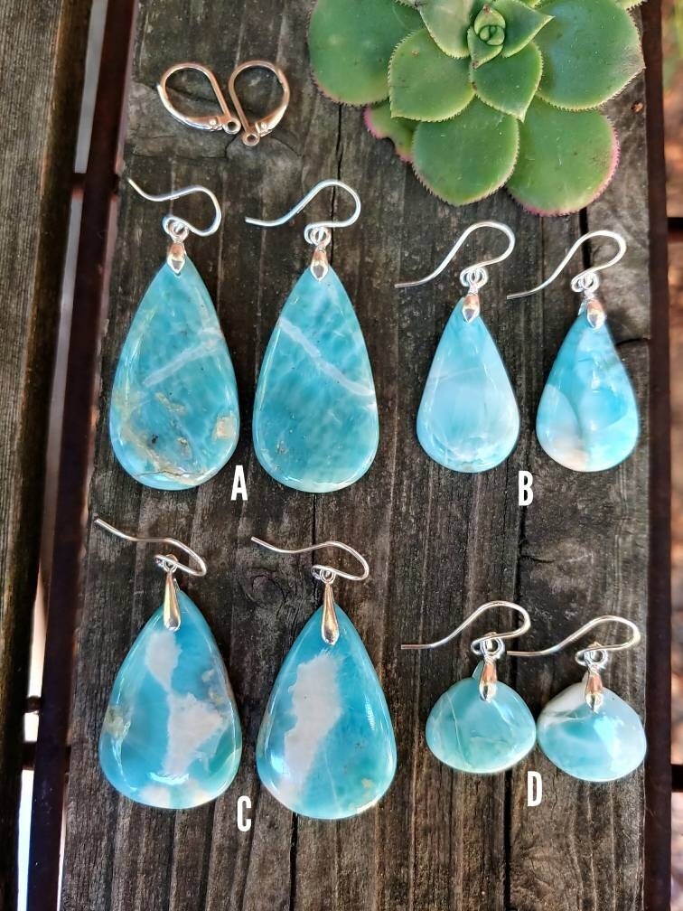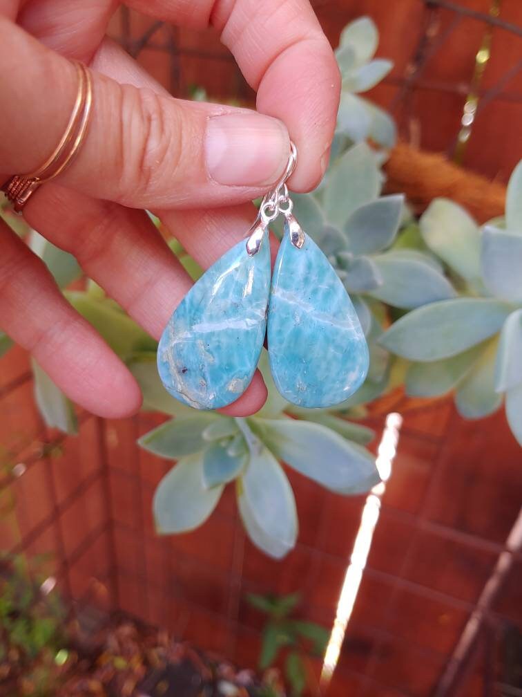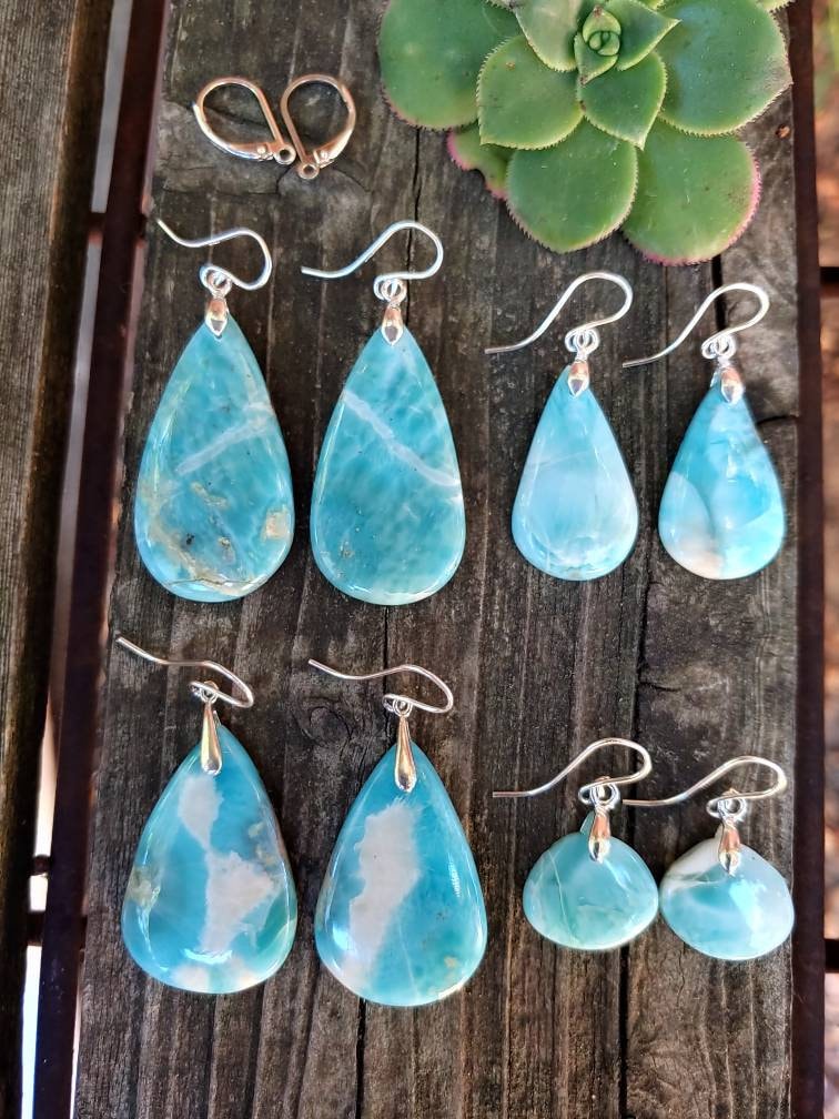 Natural blue larimar gemstone earrings. Gorgeous baby blue to Deep blue hues!!!