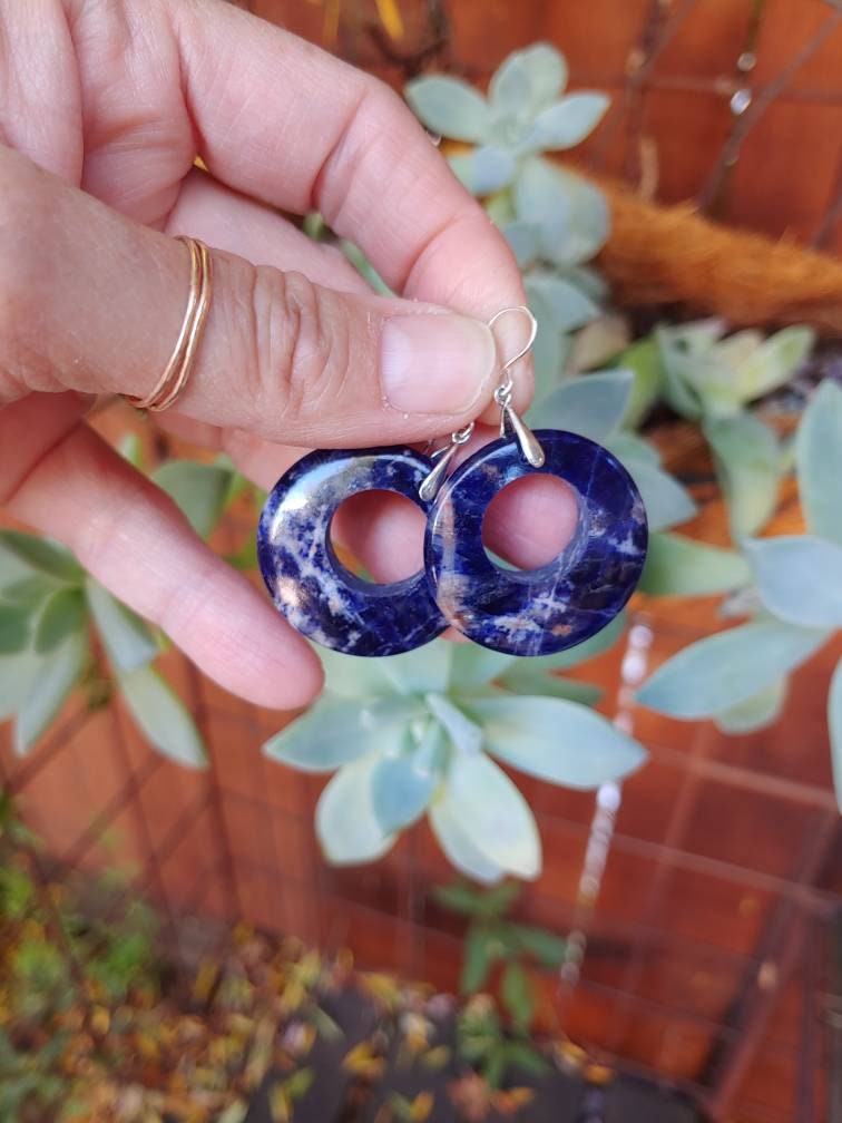 These are by far my favorite hoop earrings!!! Rose gold, gold, and sterling silver sodalite earrings.