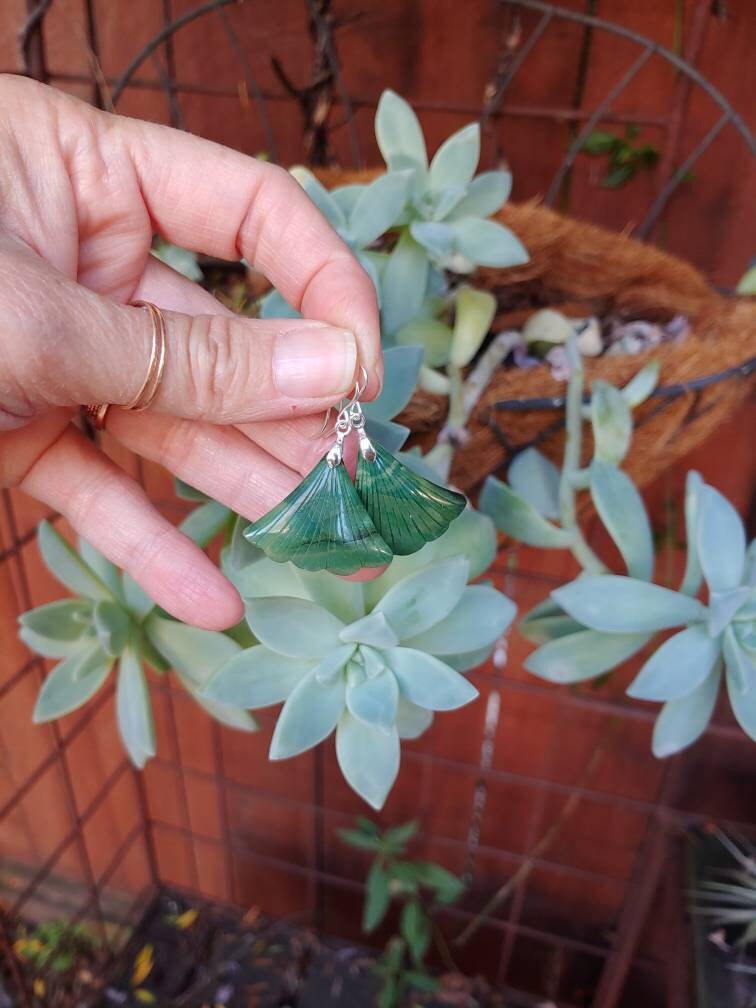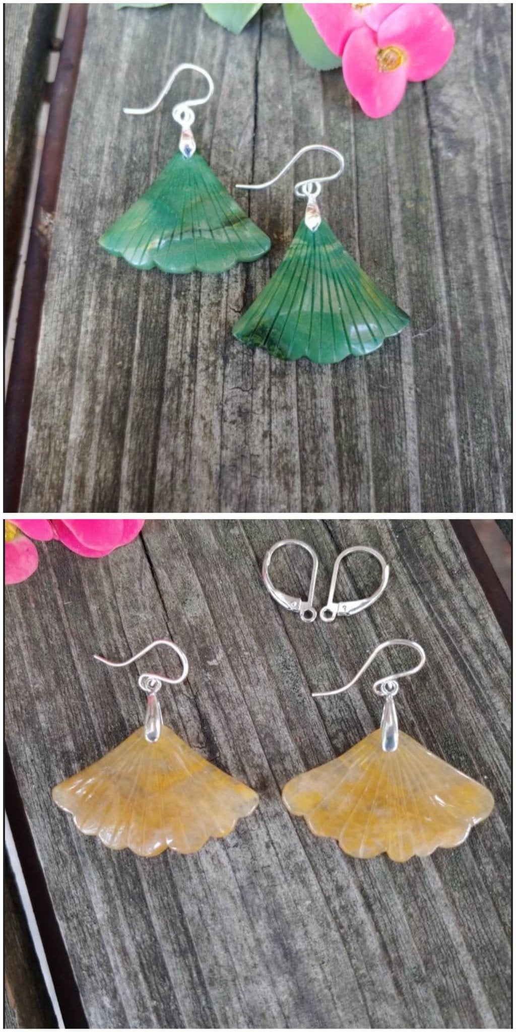 Unique jade earrings. These dangle approx 1.5 inches from earlobes