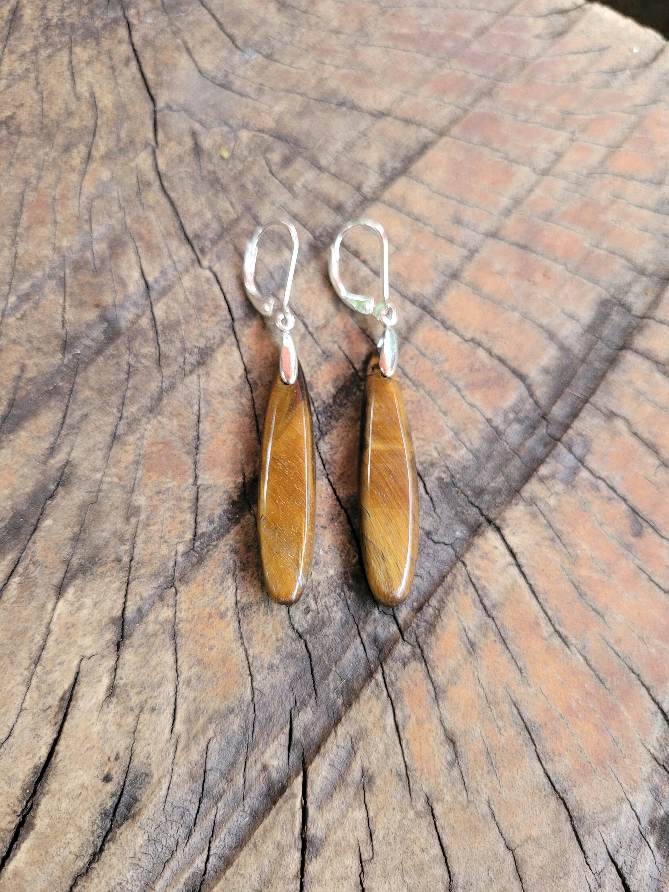 Natural tigers eye earrings in long teardrop cut
