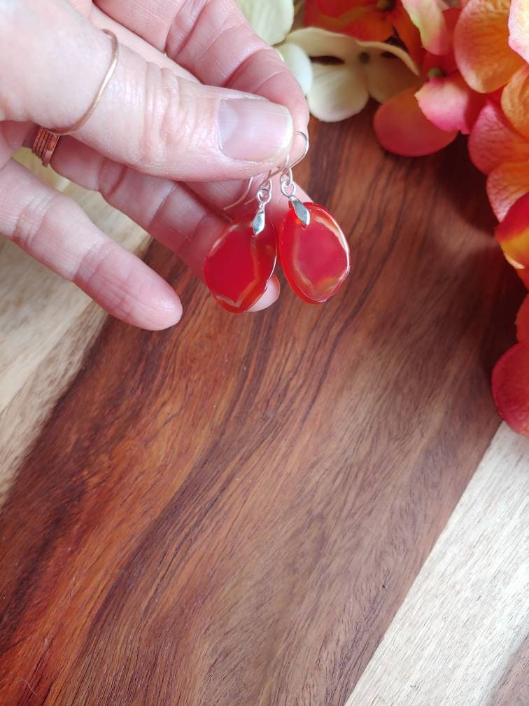 These are by far my favorite earrings!!! Sterling silver carnelian earrings.