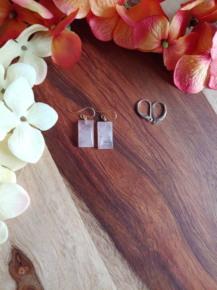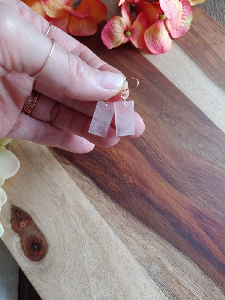 Natural rose quartz earrings in small rectangle cut