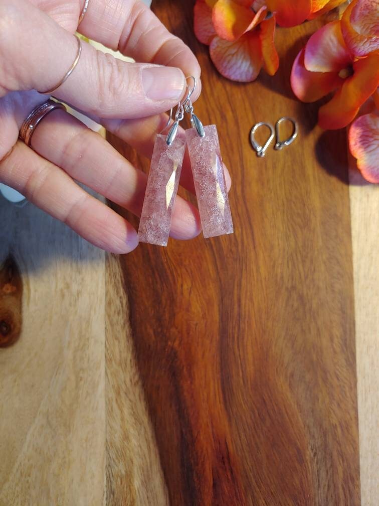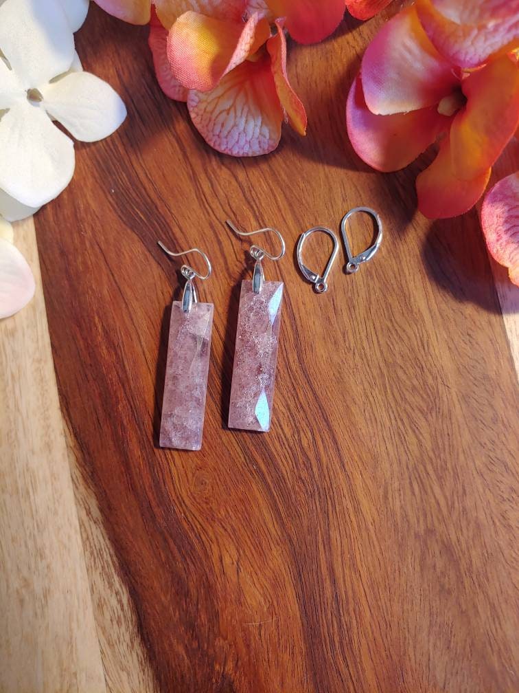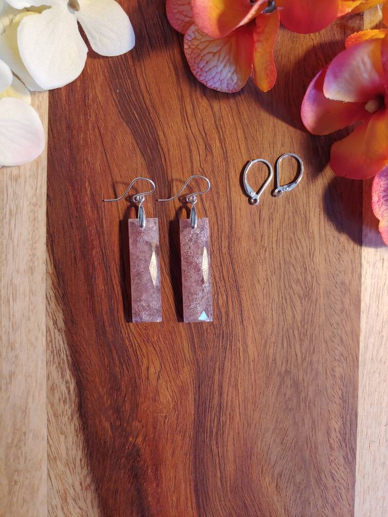 Natural strawberry quartz earrings in long faceted rectangle cut