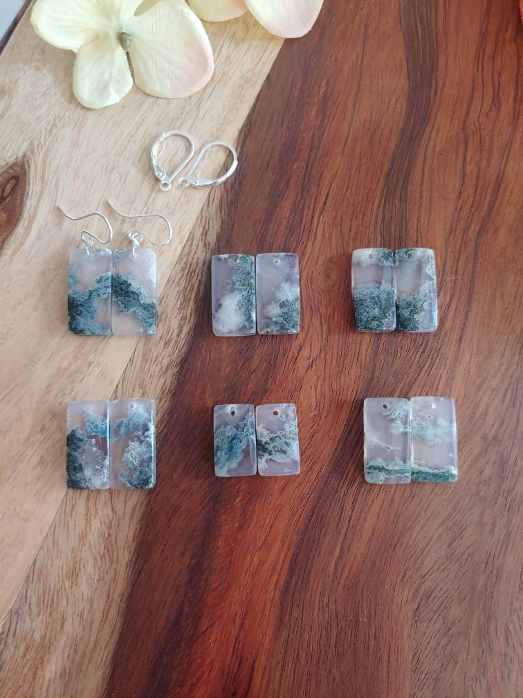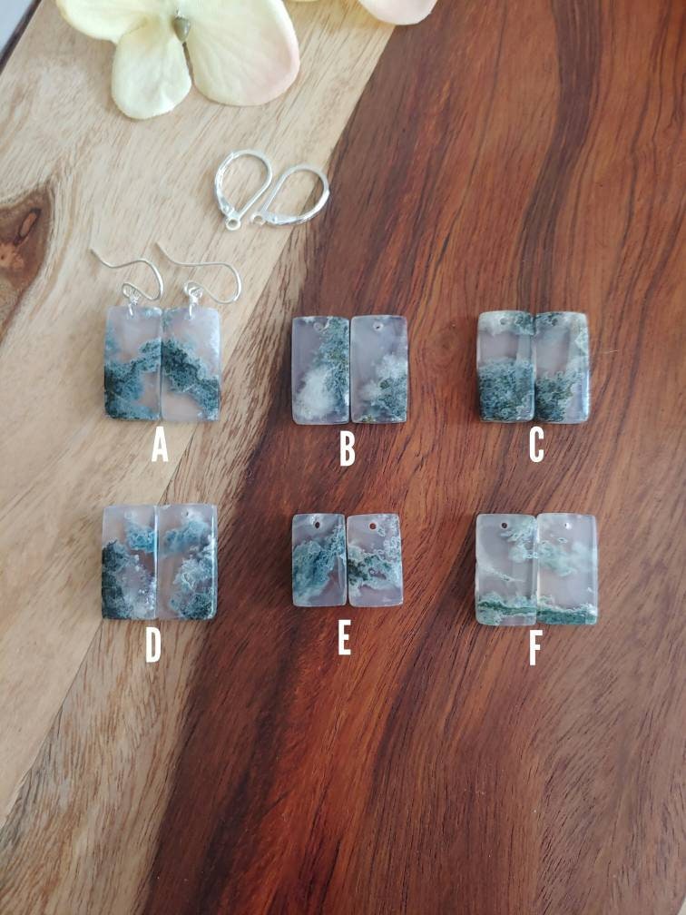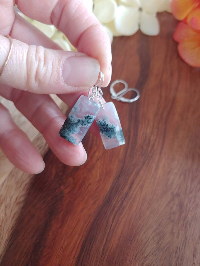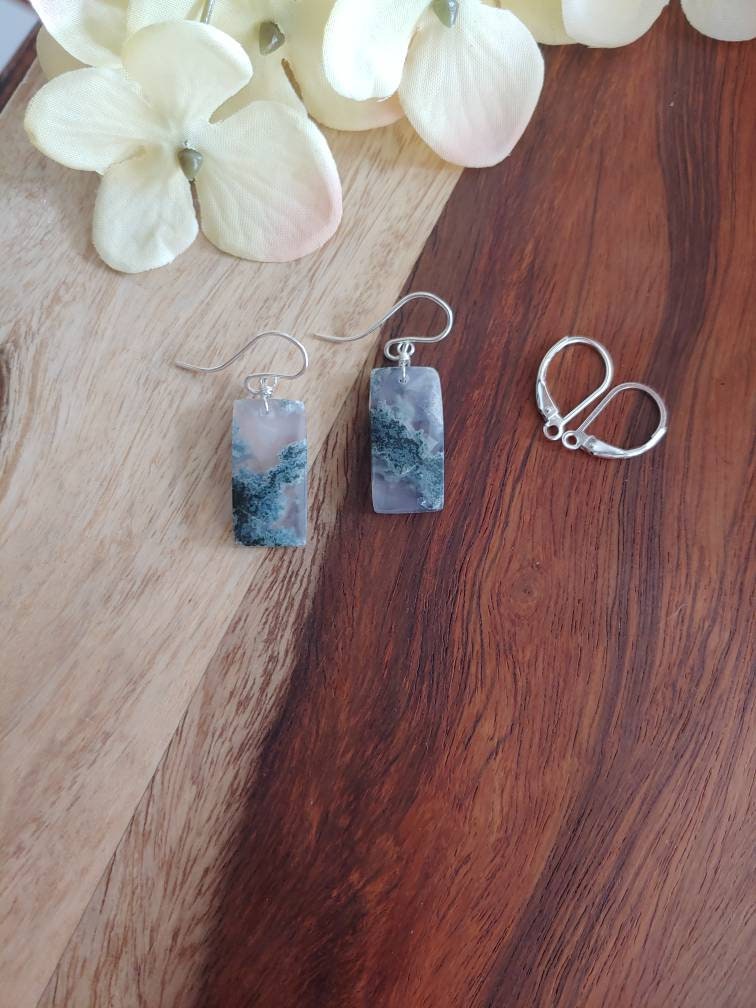 Gorgeous petite mossy green agate earrings. Available in sterling silver, gold and rose gold filled.