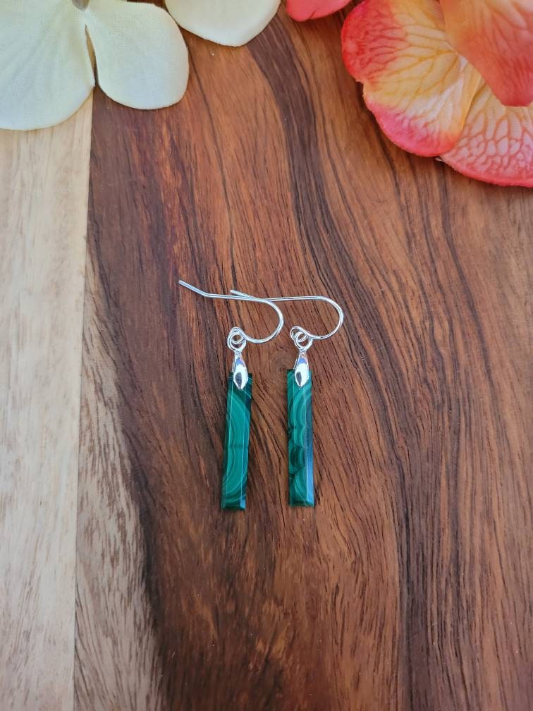 Gorgeous swirls of deep green hues in these dainty real malachite stones. Various patterns available if you want to choose your pair.