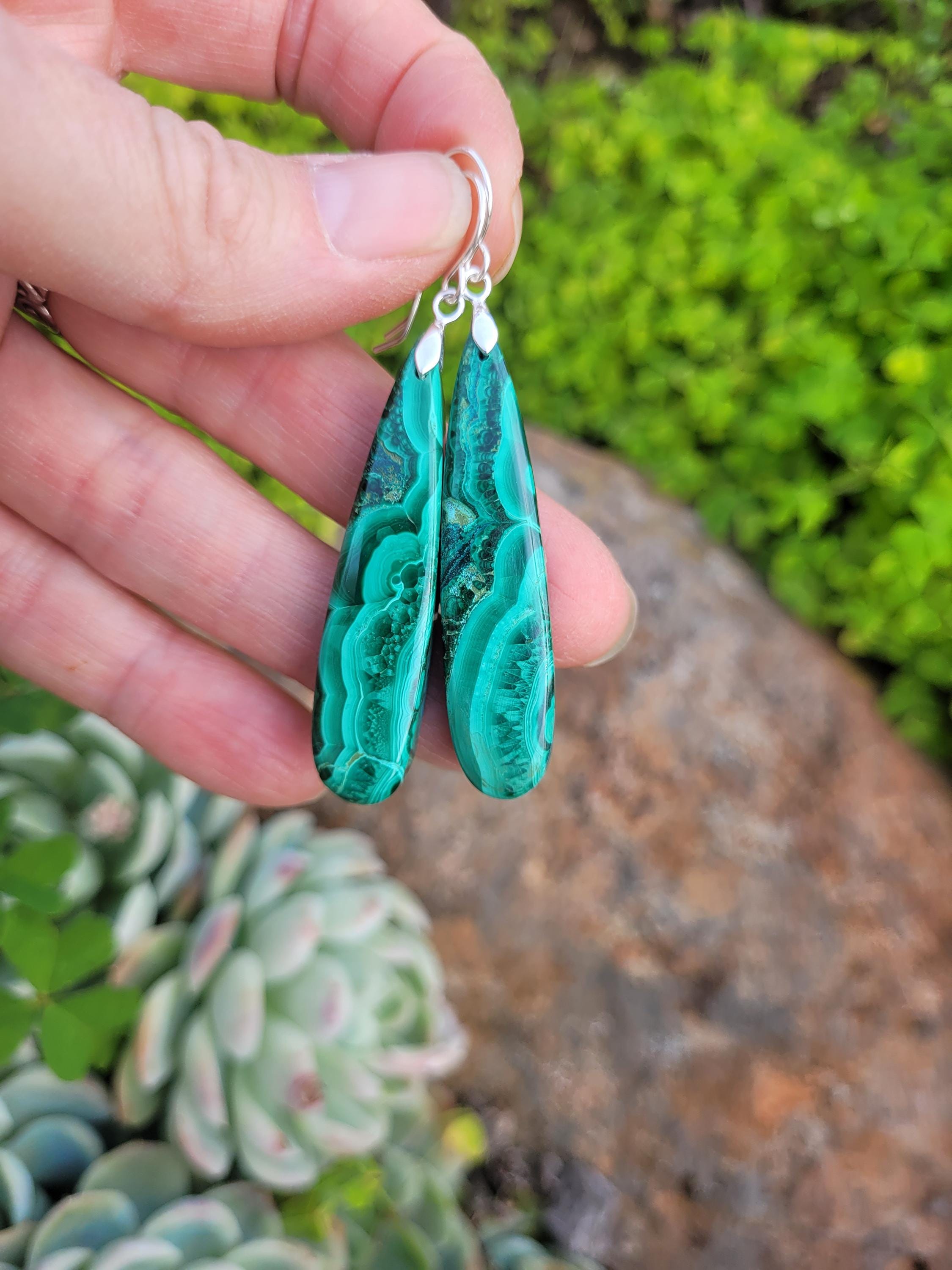 Gorgeous Deep green and bright green hues of swirled together in these malachite gems.