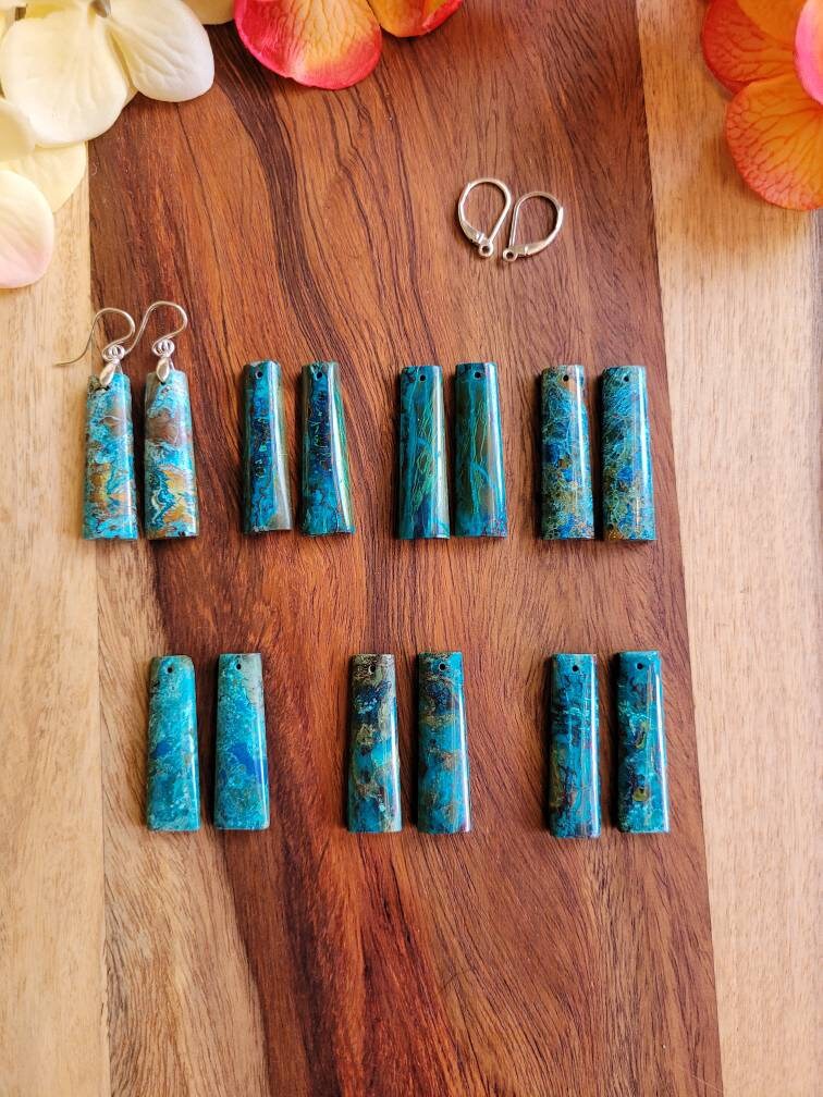 Gorgeous vibrant blues and green hues swirled together in these gemstone earrings