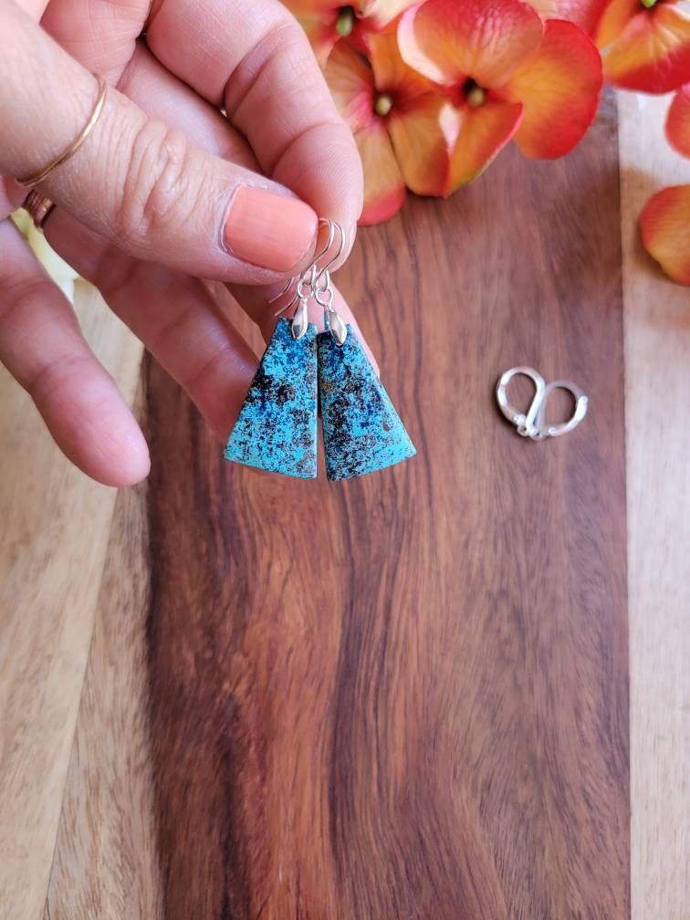 Gorgeous vibrant blue hues swirled together in these gemstone earrings