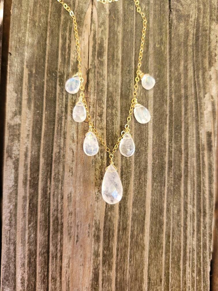 7 Dainty faceted moonstone with your choice of material.