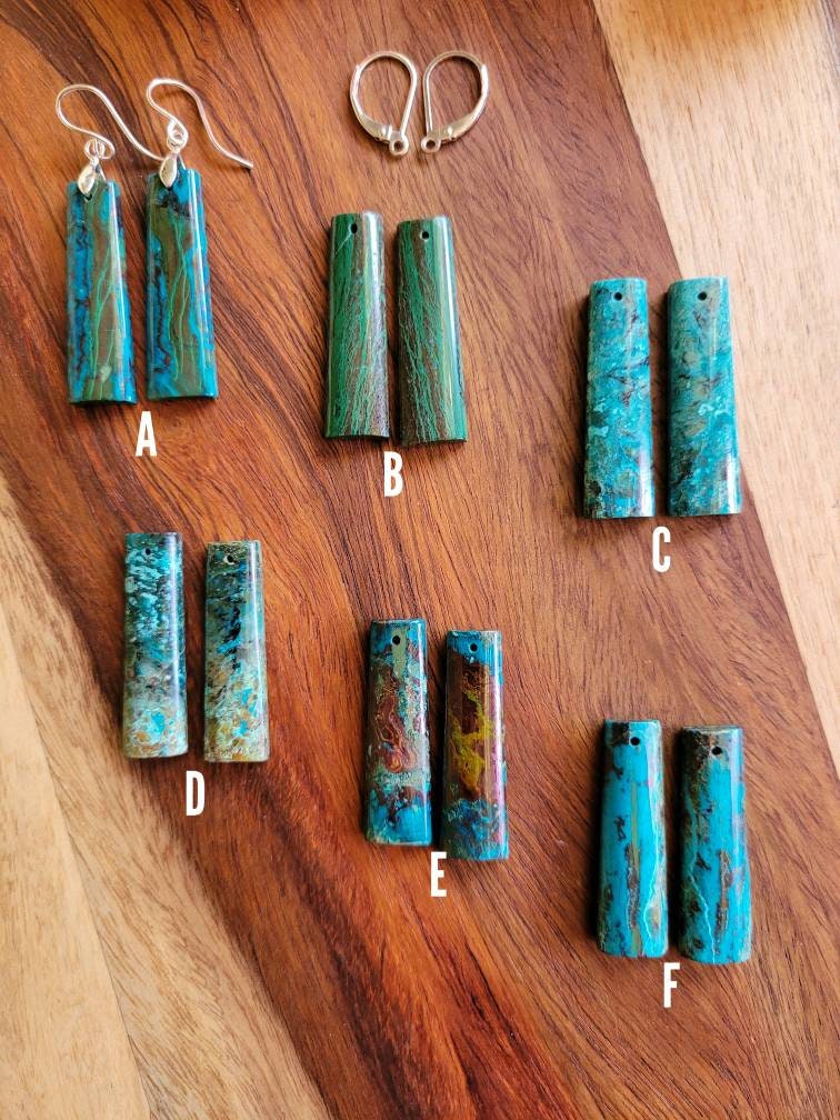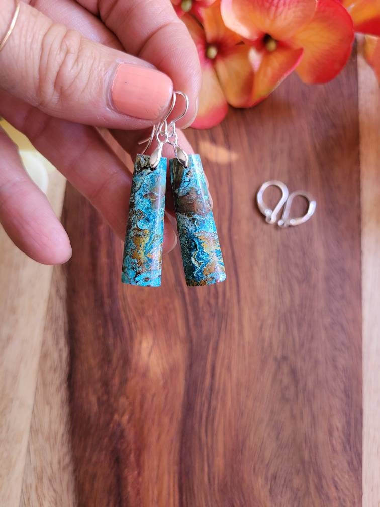Gorgeous vibrant blues and green hues swirled together in these gemstone earrings