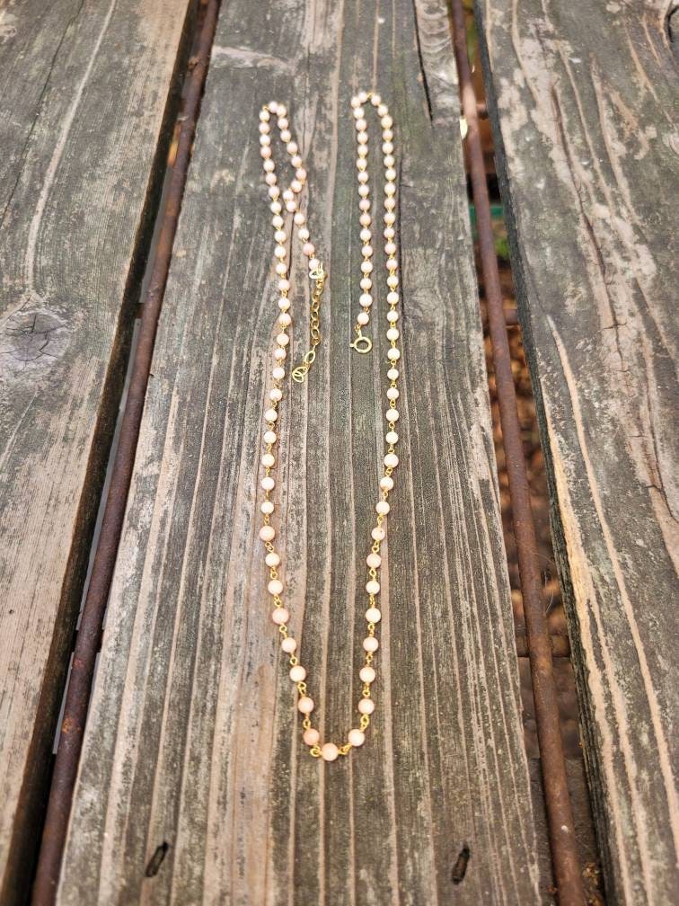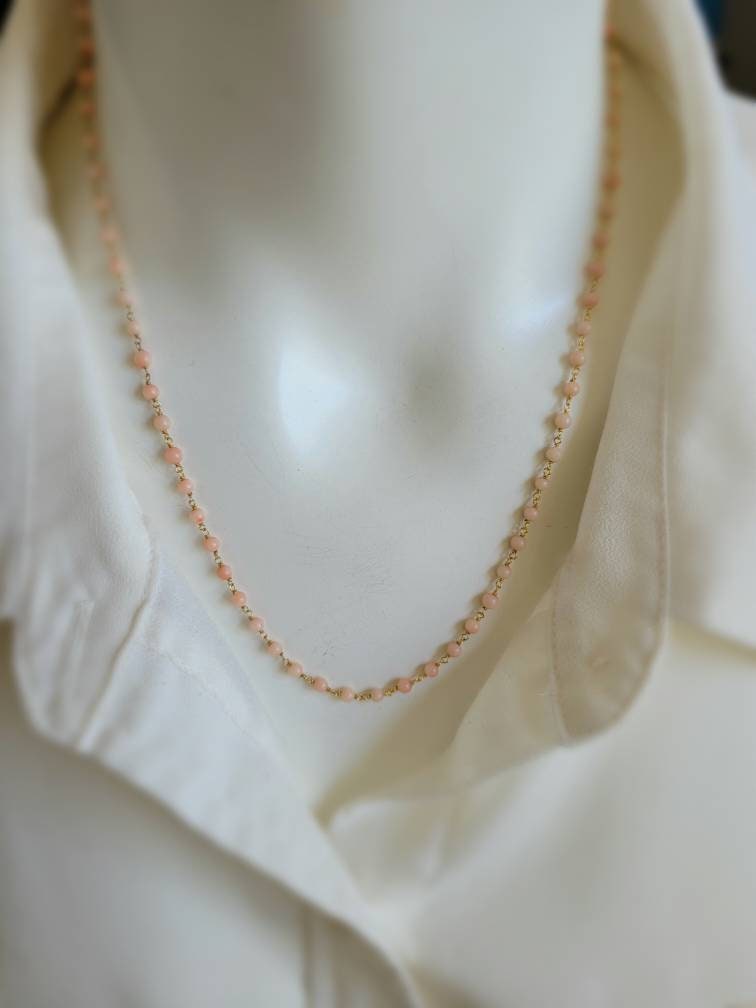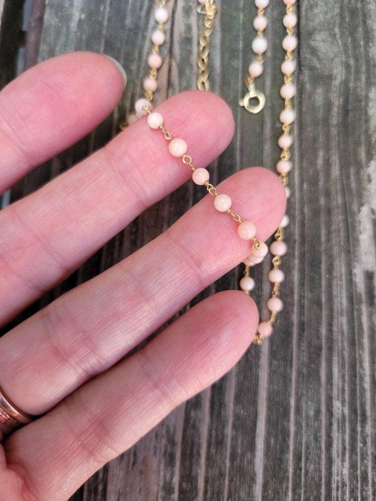 These are real angel skin coral. This necklace can be modified. This necklace is handmade wired each bead. 3mm smooth beads.