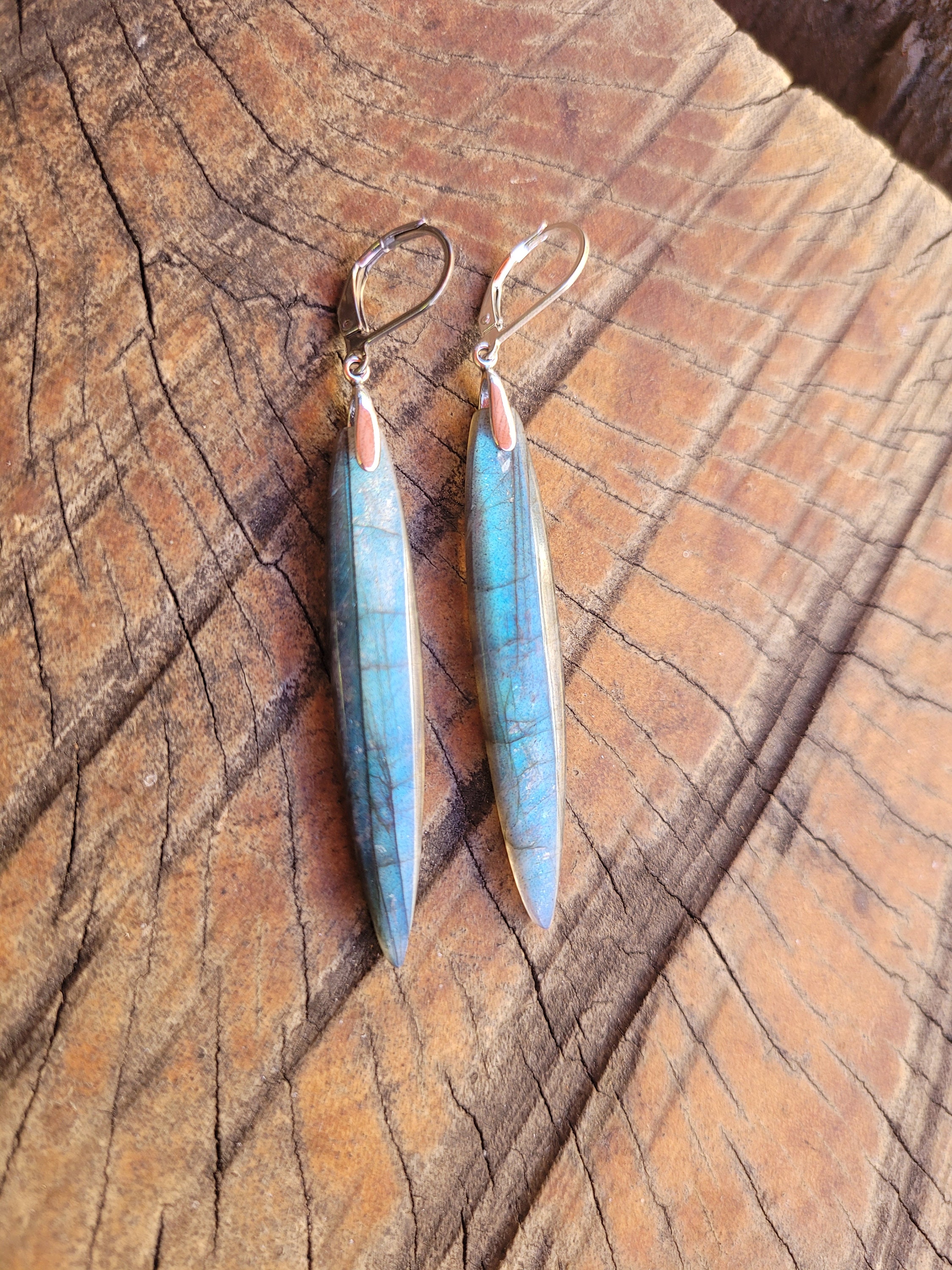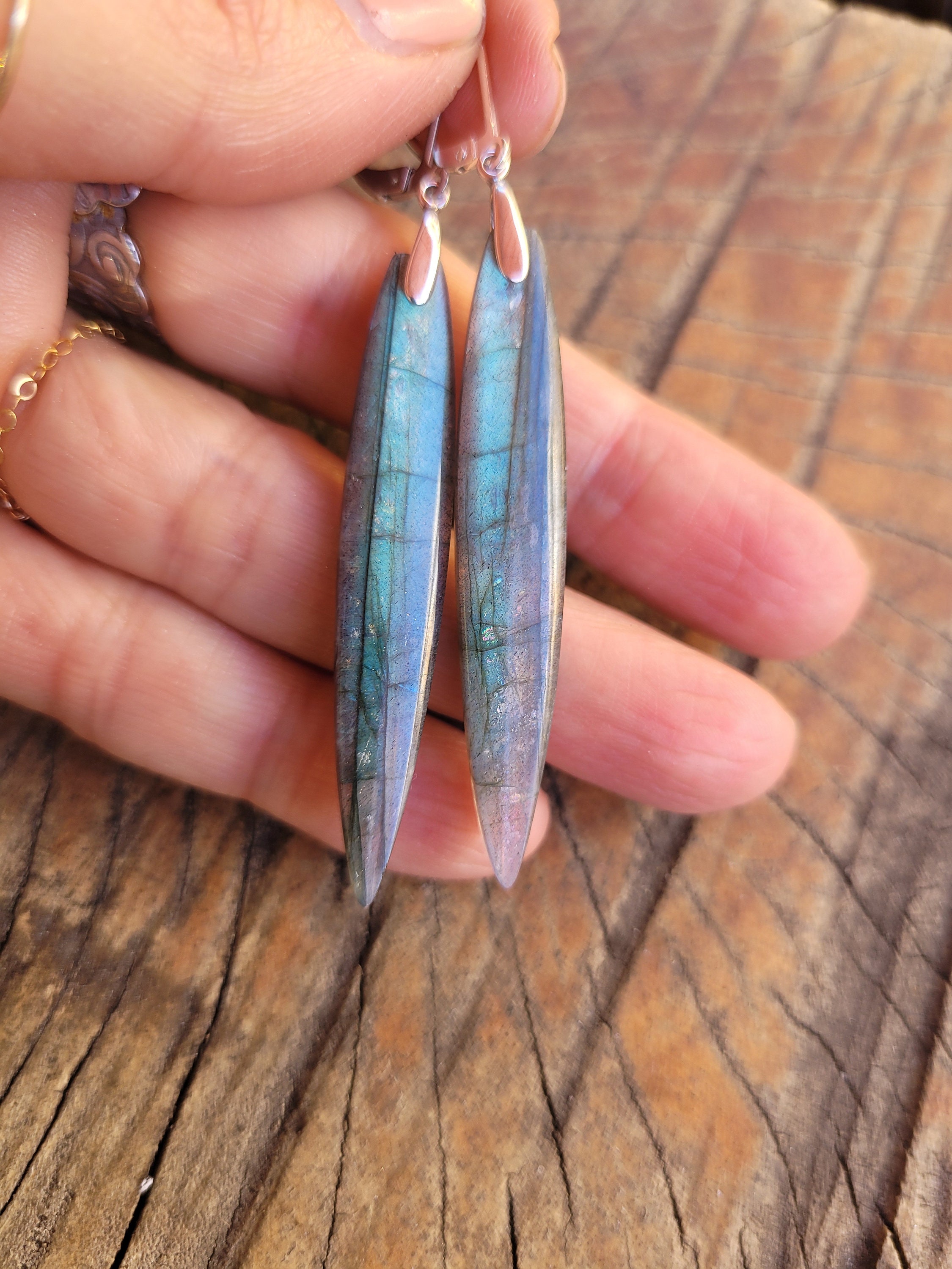 Uniquely cut long point silver earrings. Long dagger earrings.