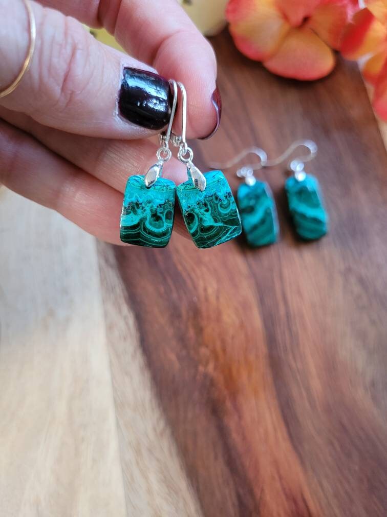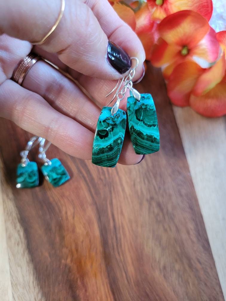 Gorgeous Deep green and bright green hues of swirled rings in these malachite gems.