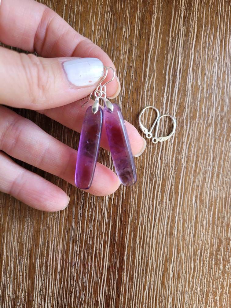 These beauties have the sweetest purple hues and have multiple purple colors throughout. These dangle approximately 2 inches from earlobe. ❤️