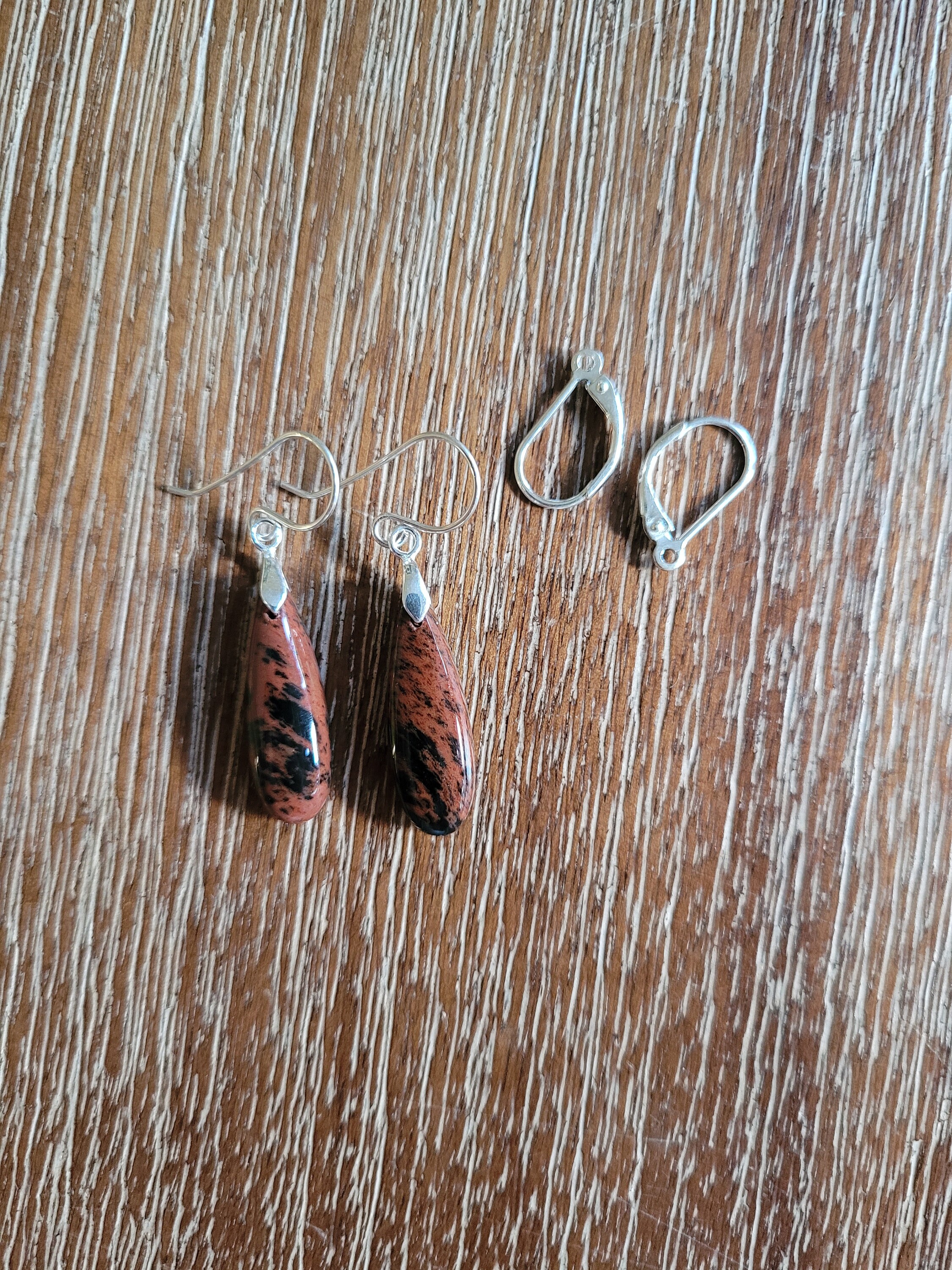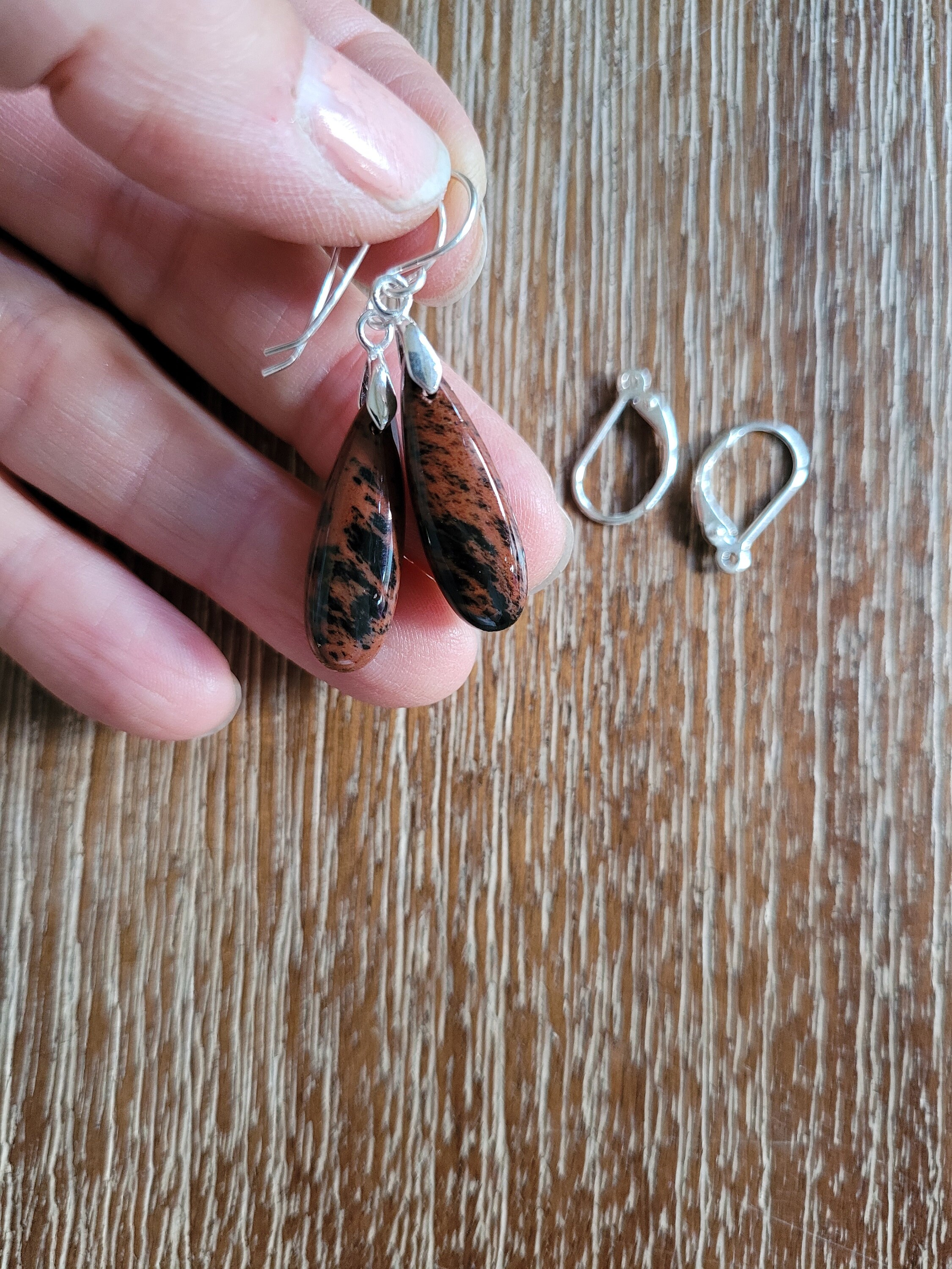 Beautiful mahogany obsidian earrings dangle approximately 1 inch from earlobe. Bold and sexy.