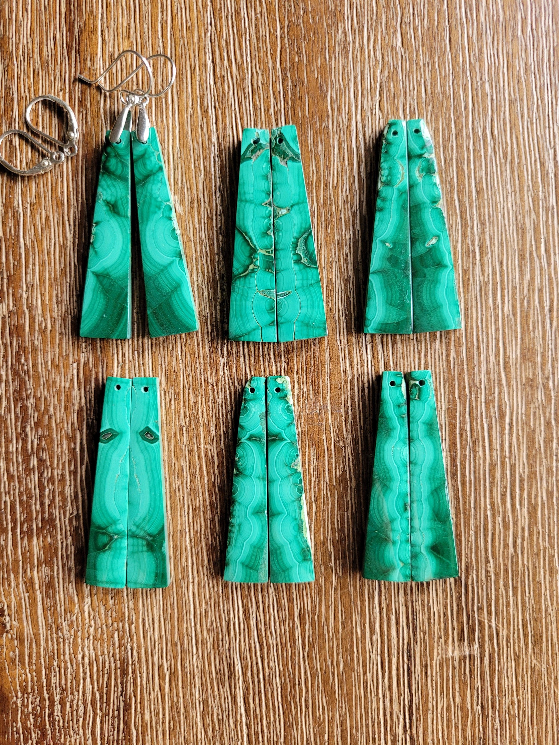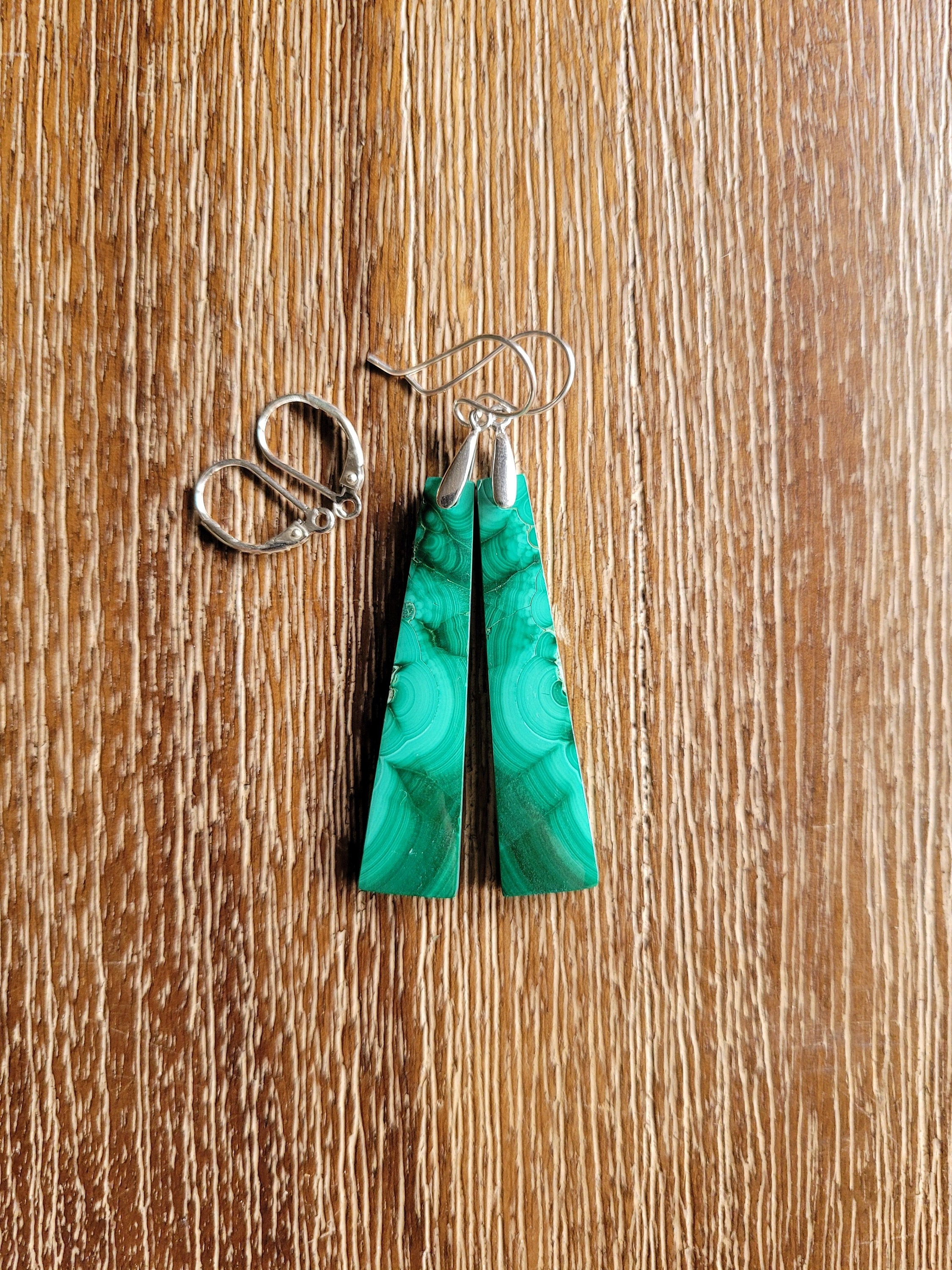 Long trapazoid azurite malachite earrings. Sterling silver green earrings