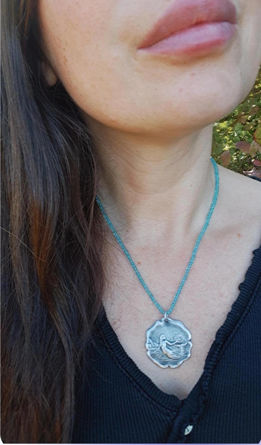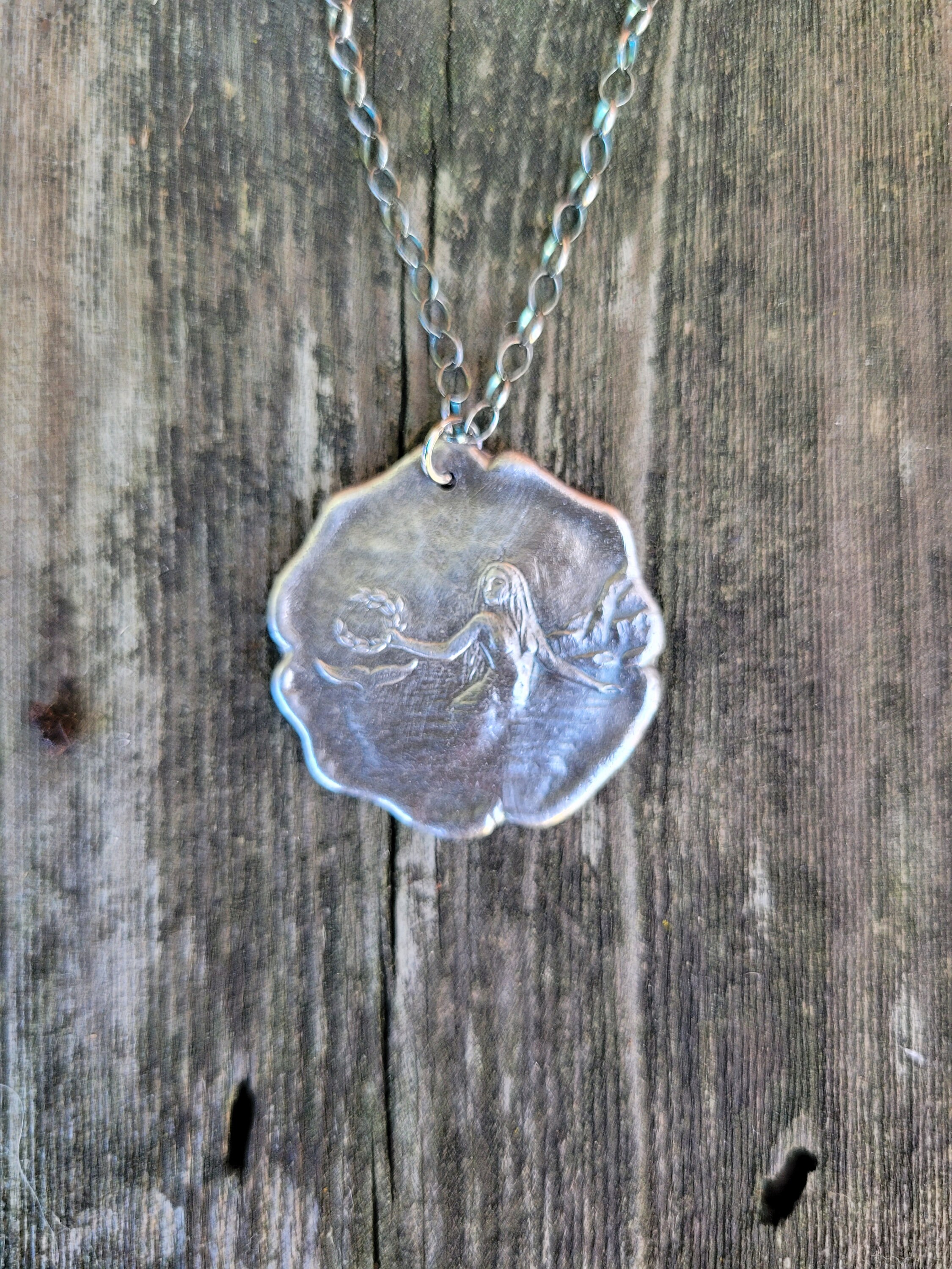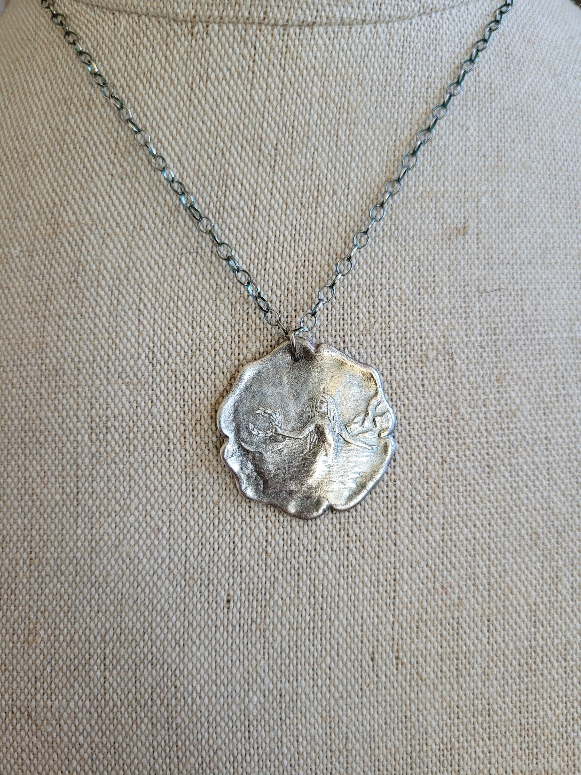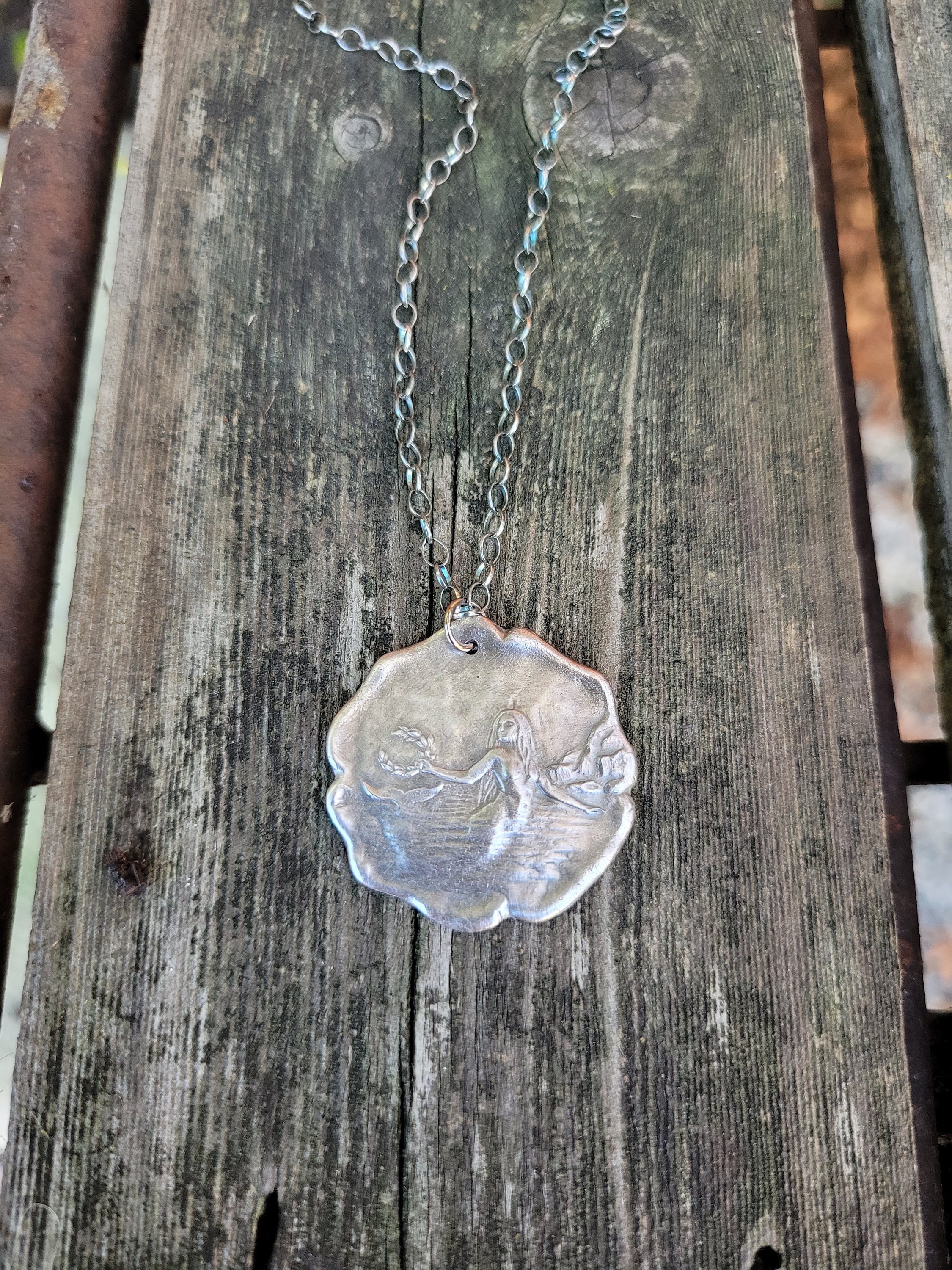 Art nouveau French mermaid pendant necklace. She's whimsical and feminine. Dainty yet fierce.