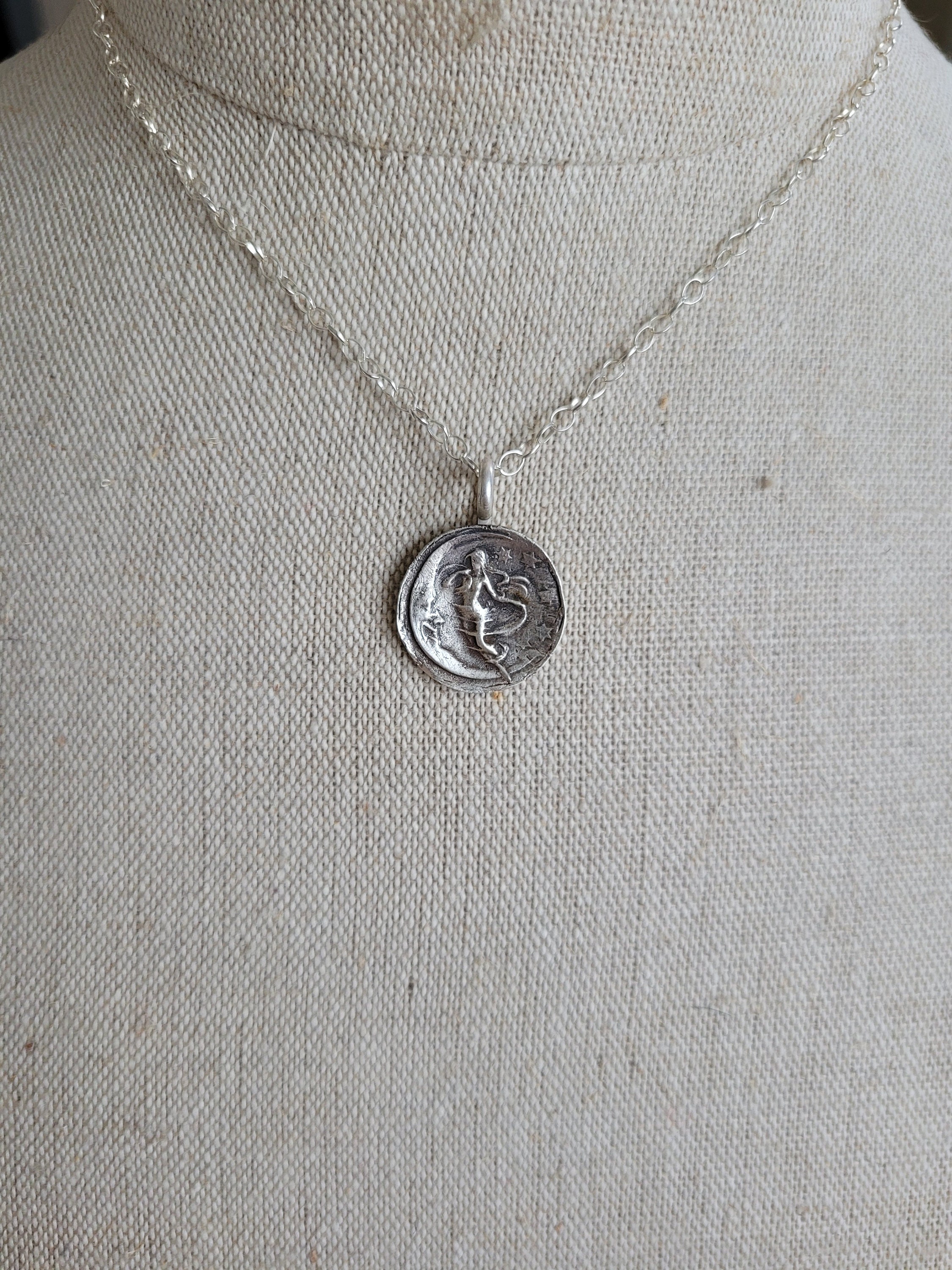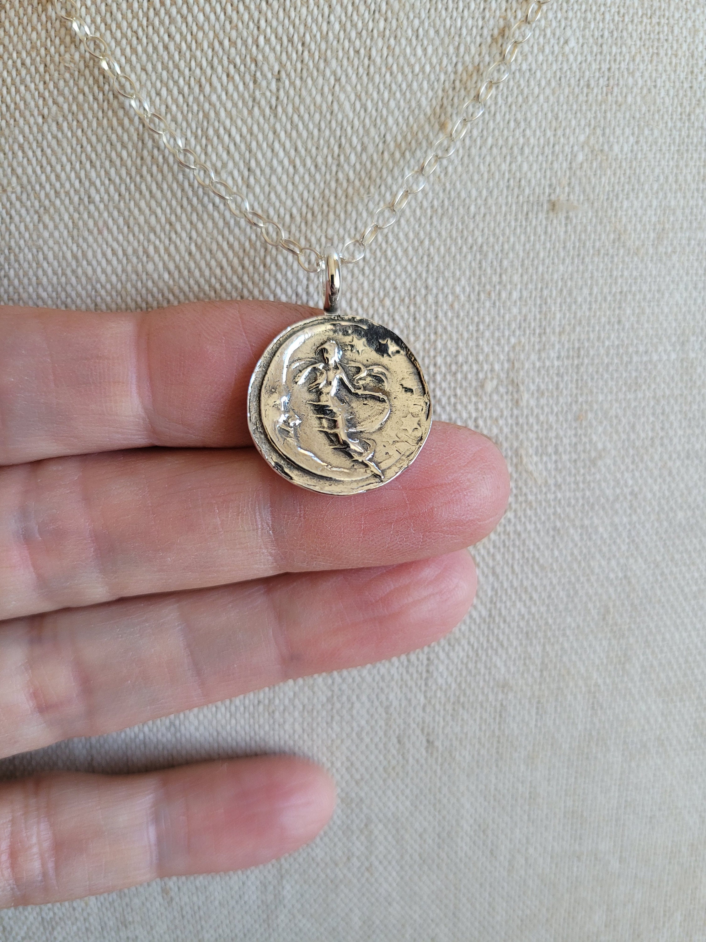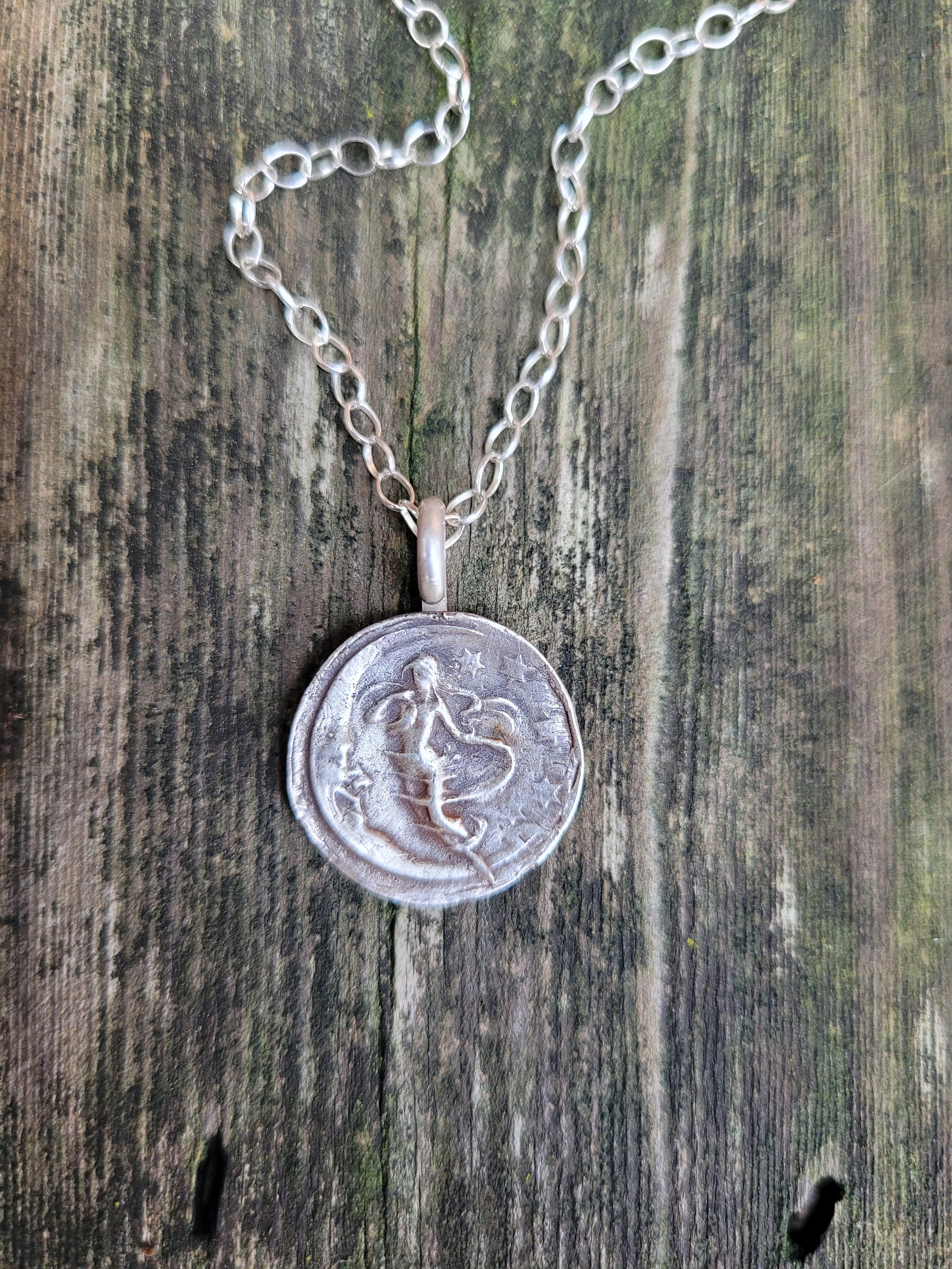 Art nouveau French woman dancing pendant necklace. She's feminine and gorgeous!
