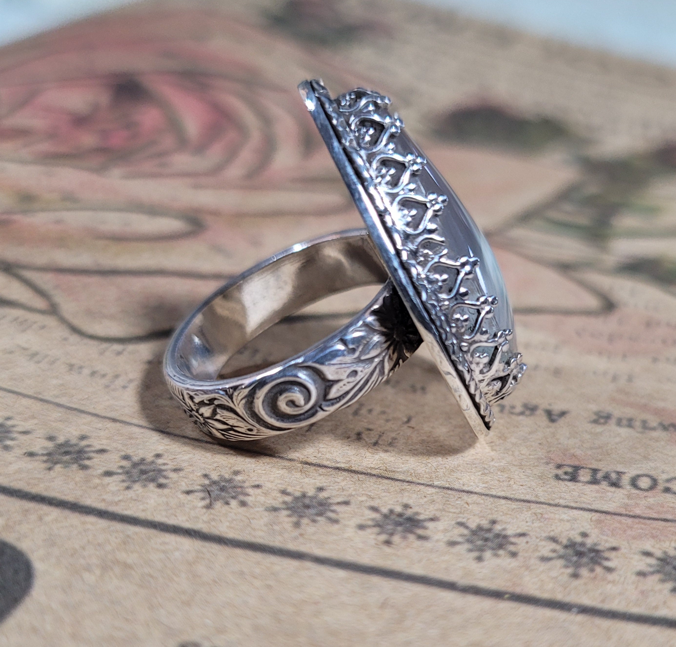 Nice thick band and sturdiness for everyday wear with sweet detailed swirls and flourishes