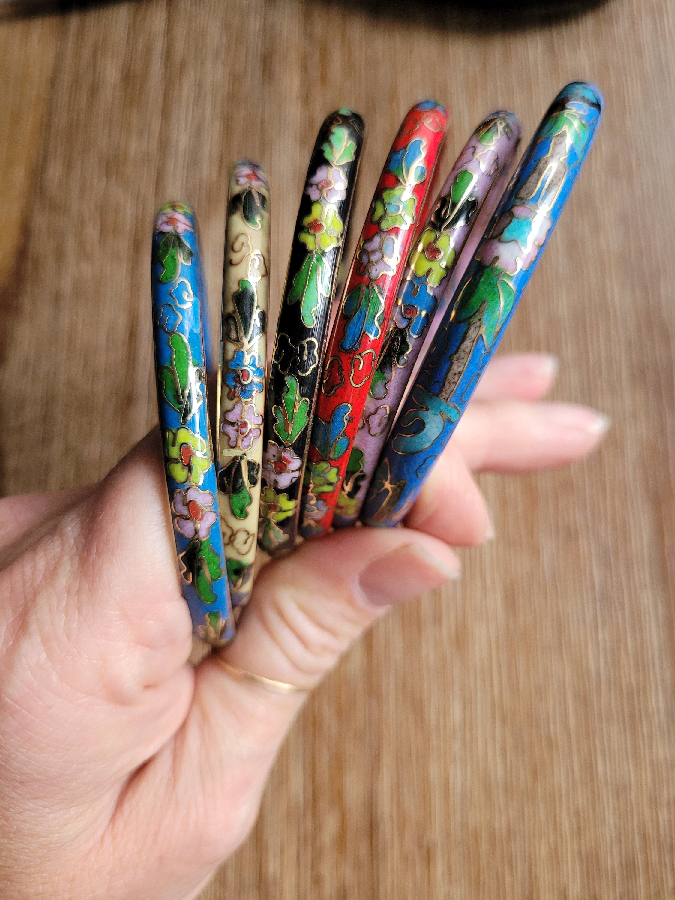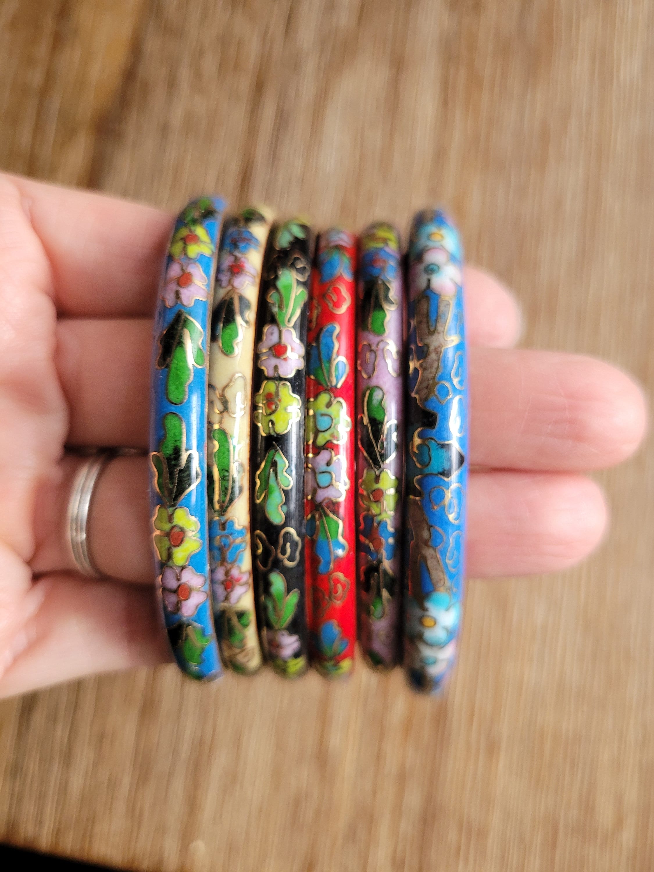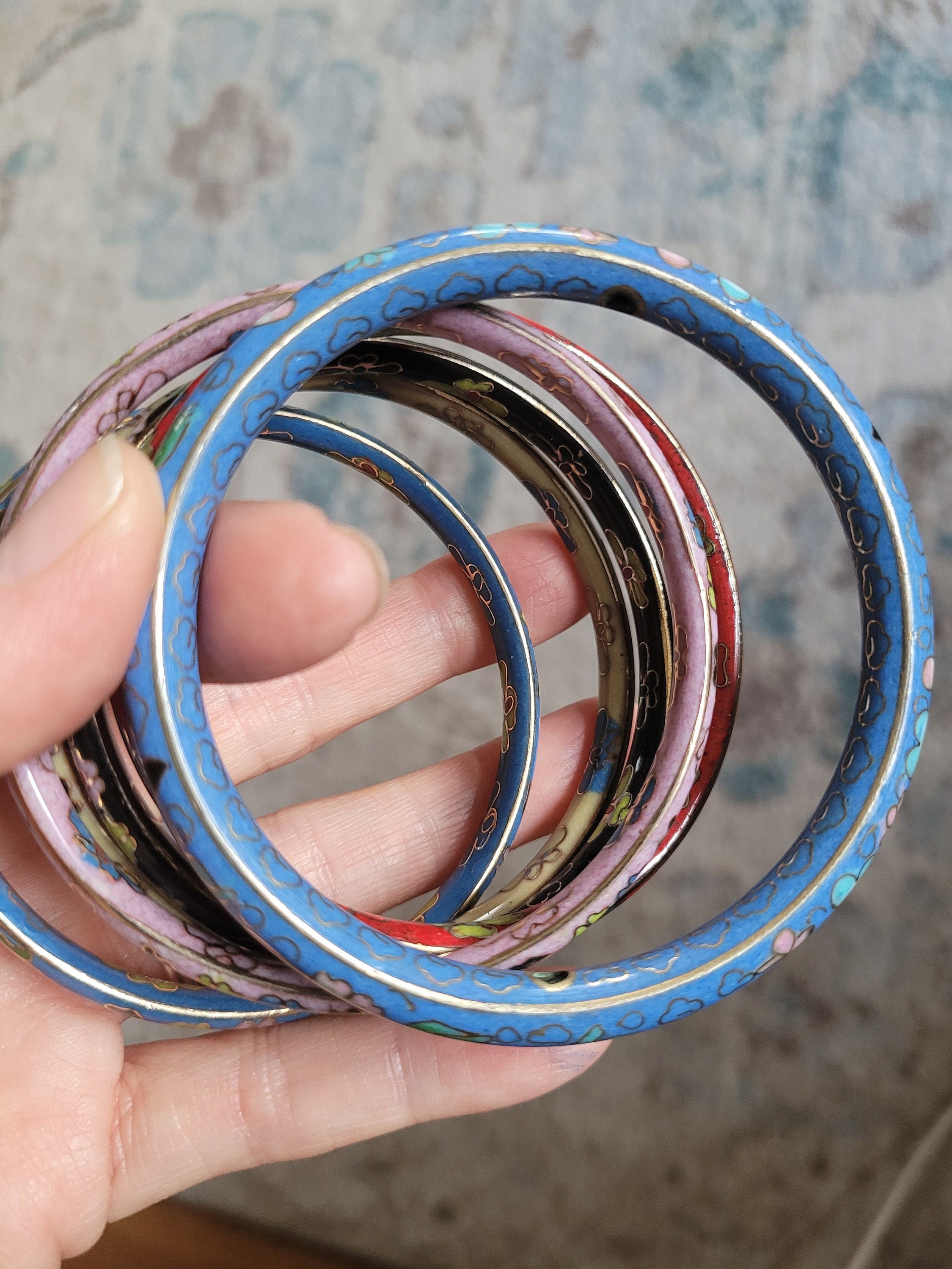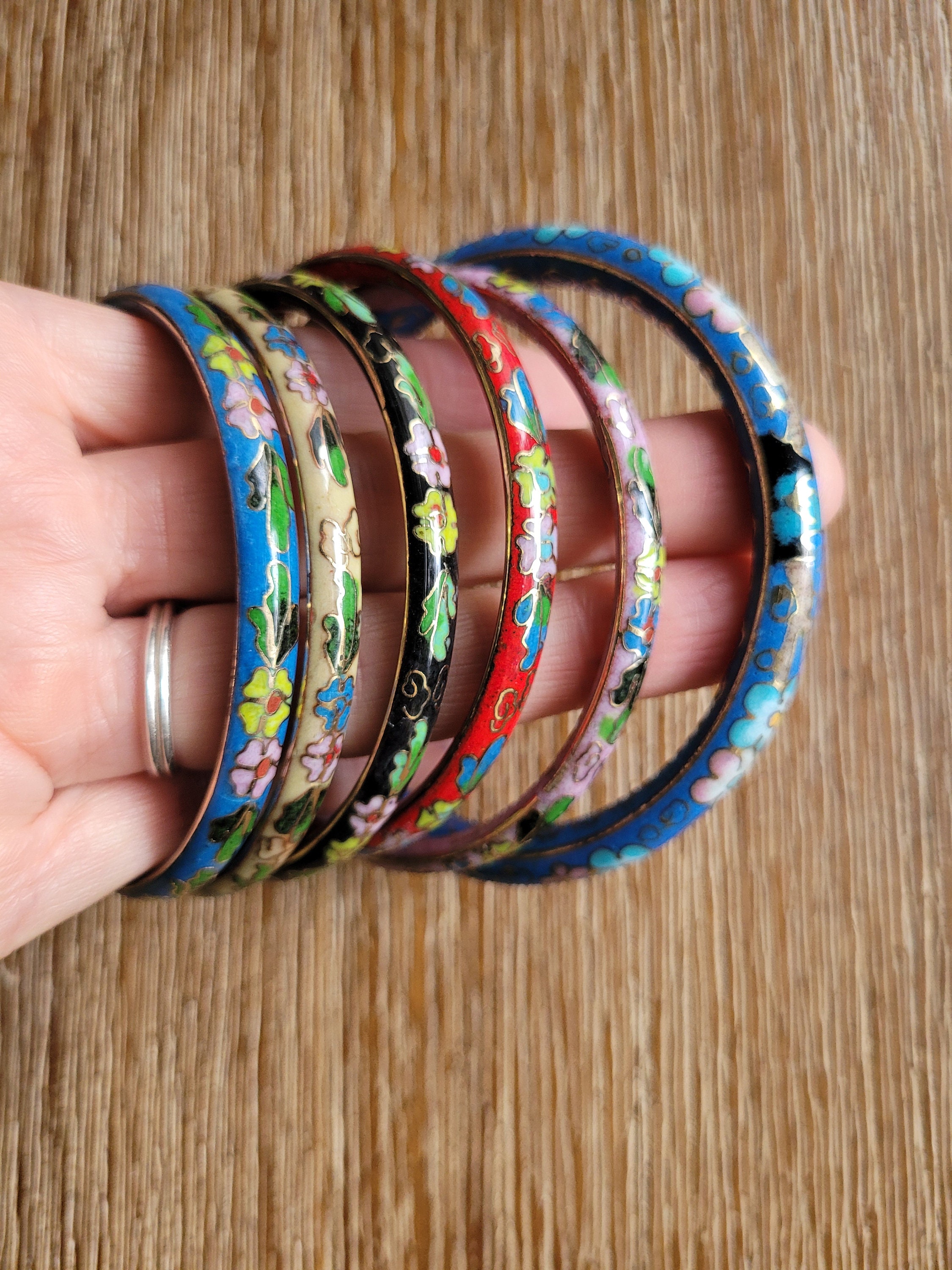 Gorgeous vintage cloisonne bangle bracelets. These are no longer in production. Inner diameter is 2 3/4 inch. Multiple colors available.