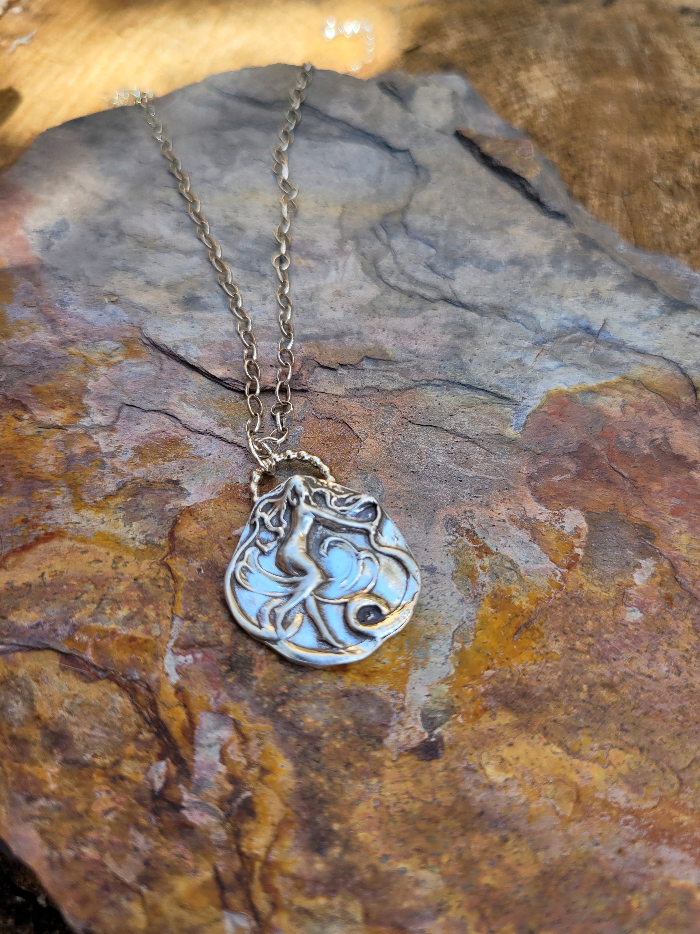 Art nouveau French woman dancing pendant necklace. She's feminine and gorgeous!
