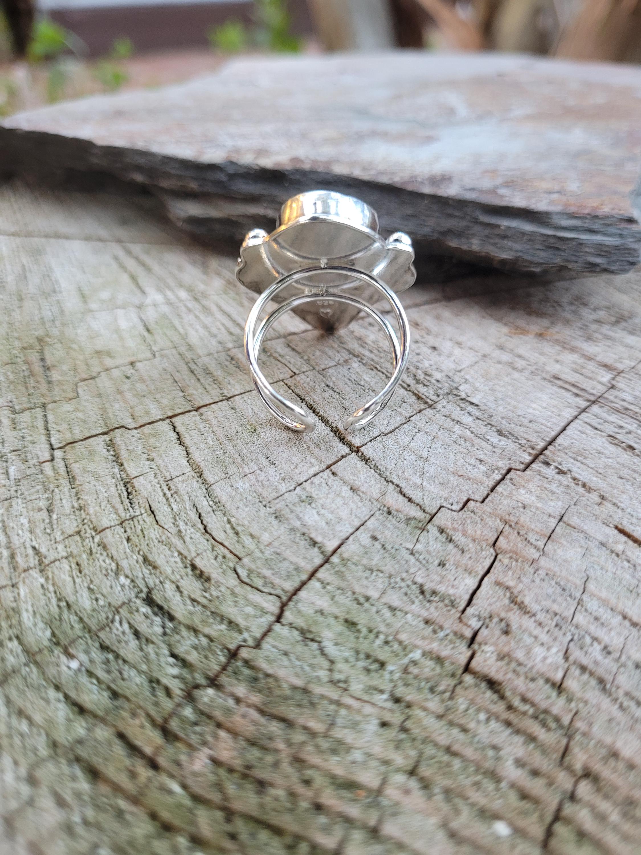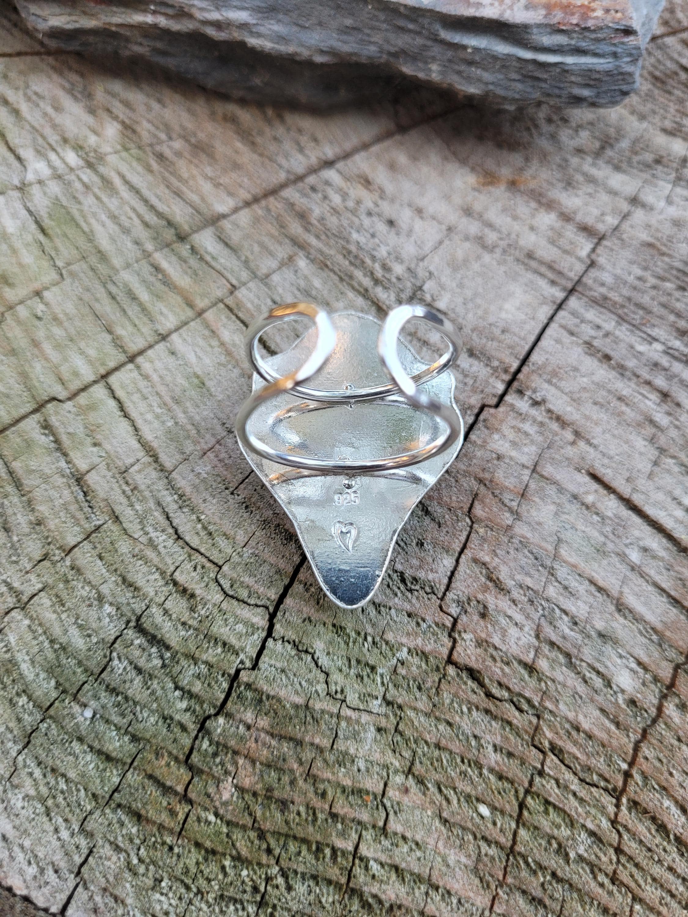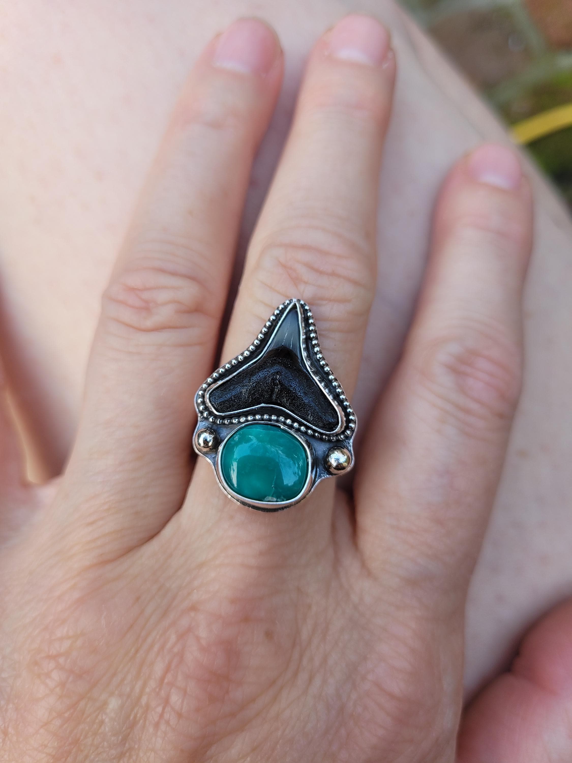 Ethically sourced shark tooth ring with gorgeous turquoise gemstone.