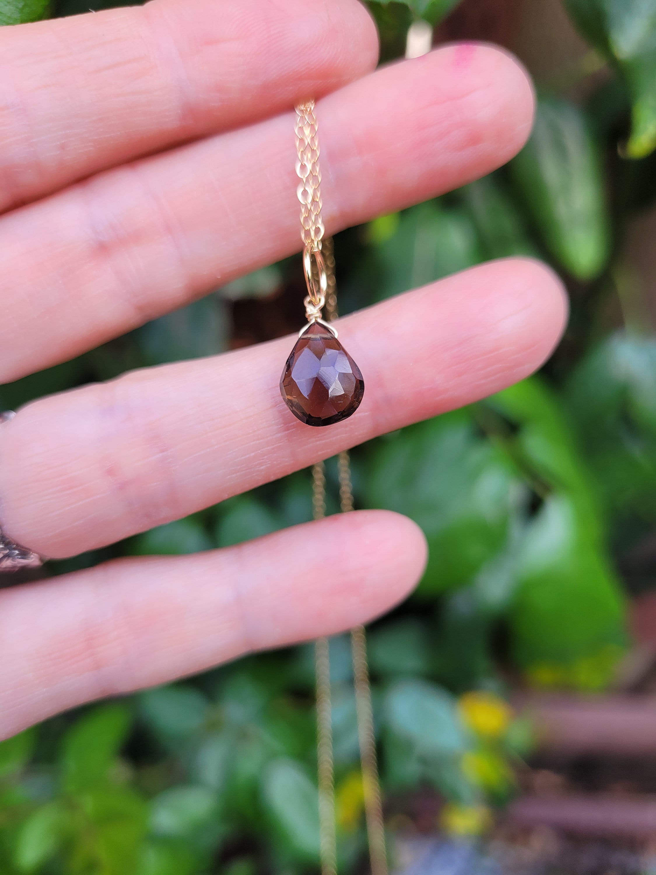 Dainty and smoky quartz teardrop on your choice of gold filled, sterling silver or rose gold. Hand wired with love! These are approx 8x10mm and are AAA cut gemstones.