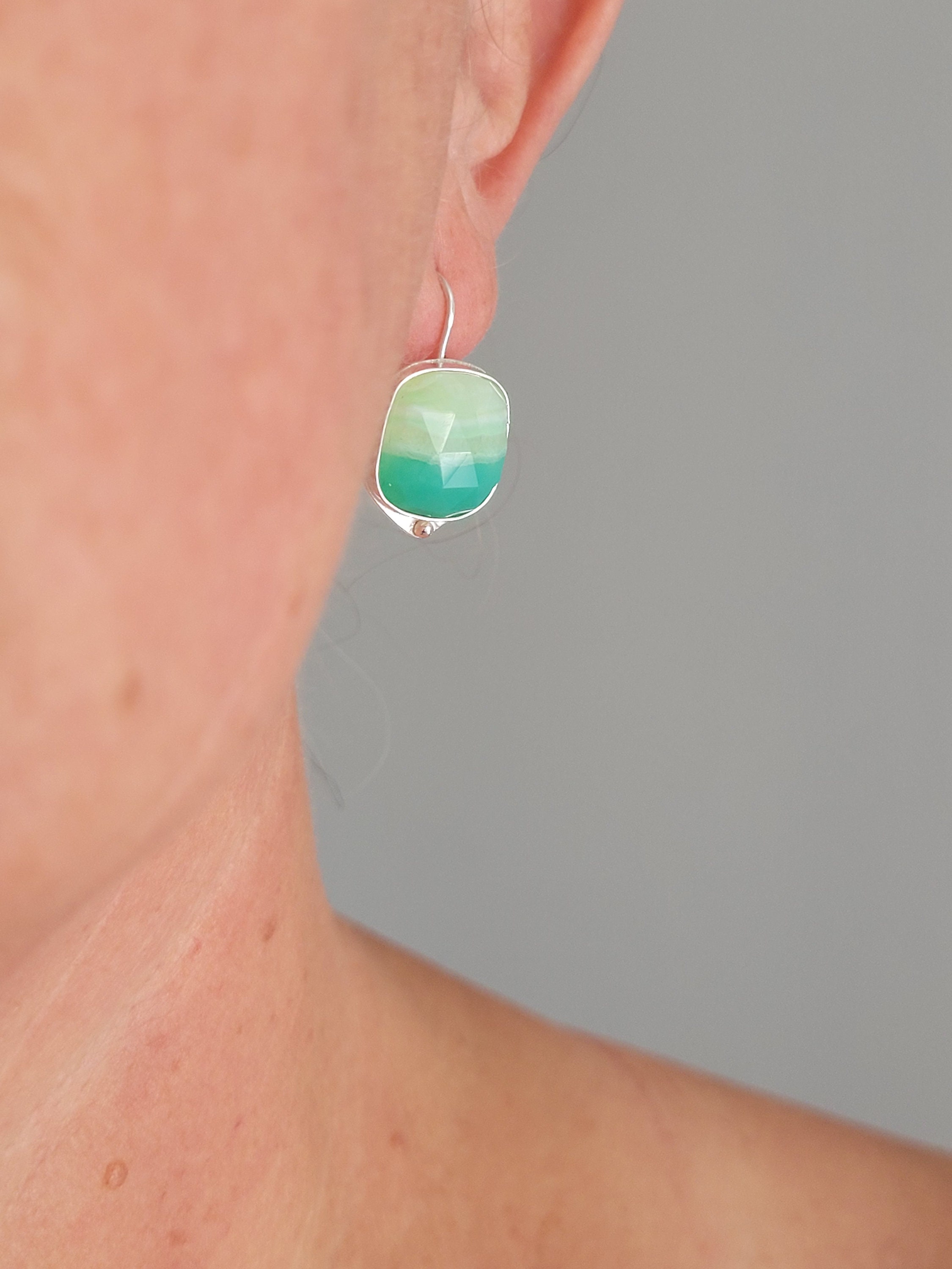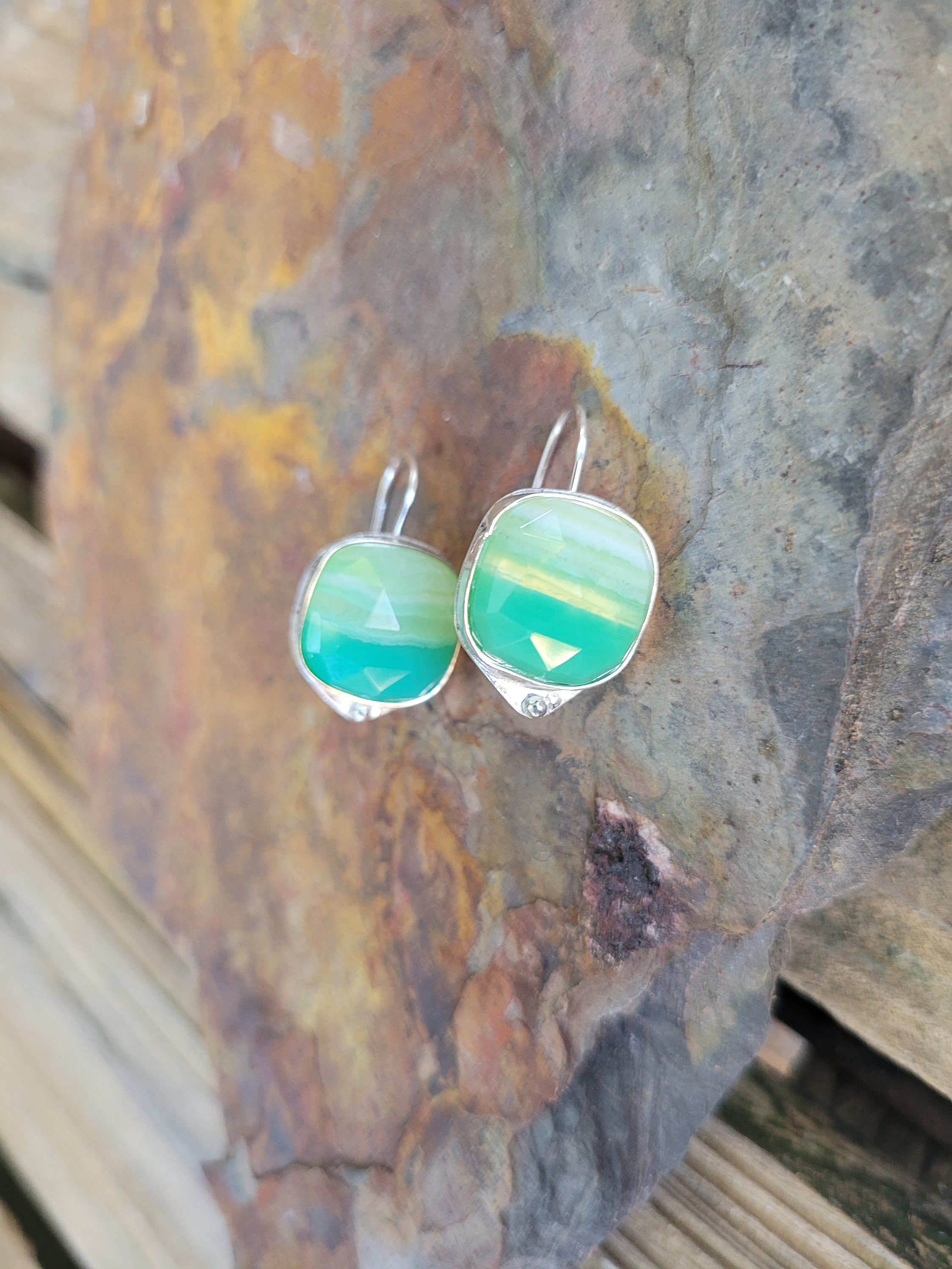 Sweet chrysoprase earrings. These dangle approx 1 inch from earlobe.