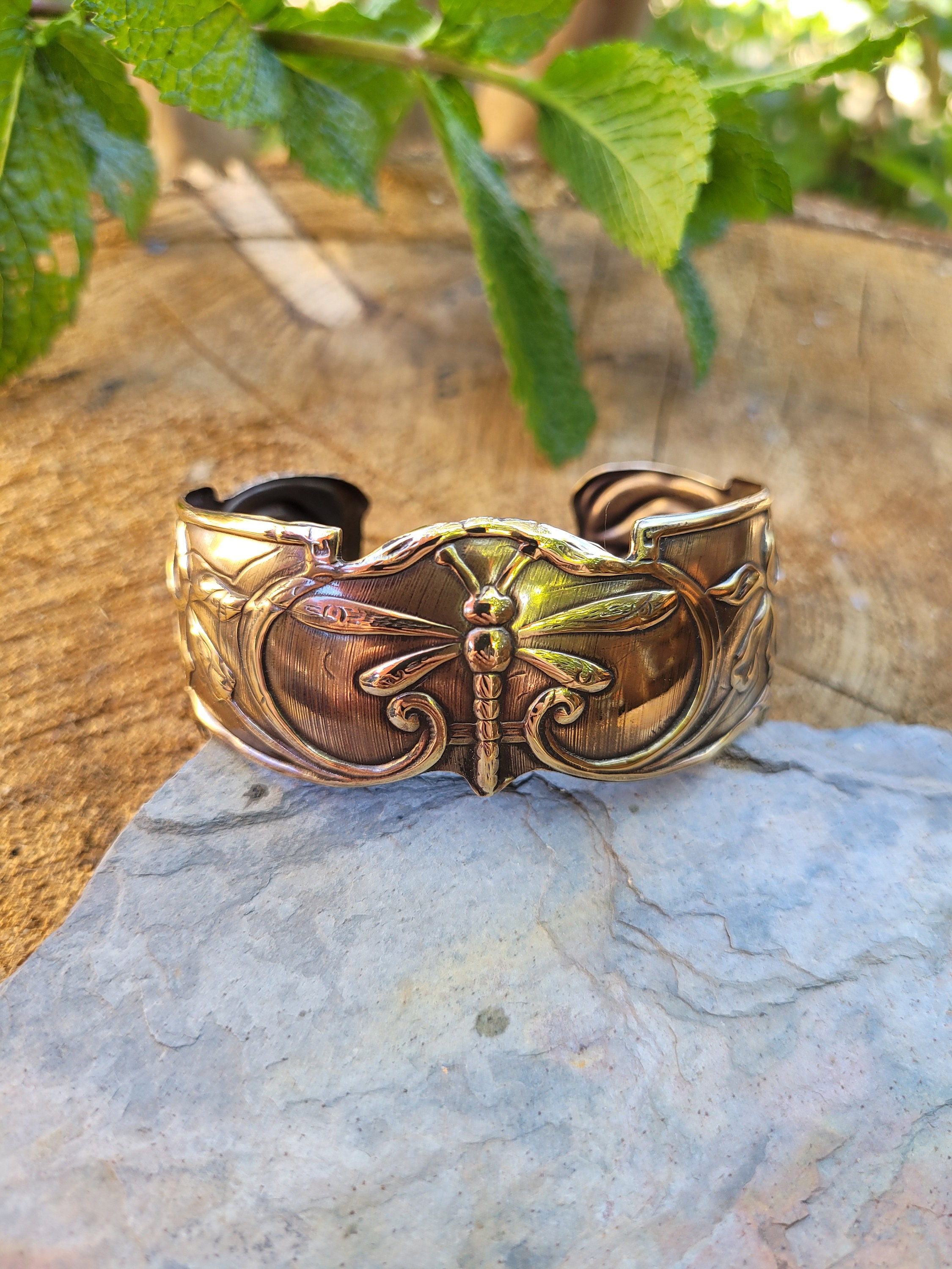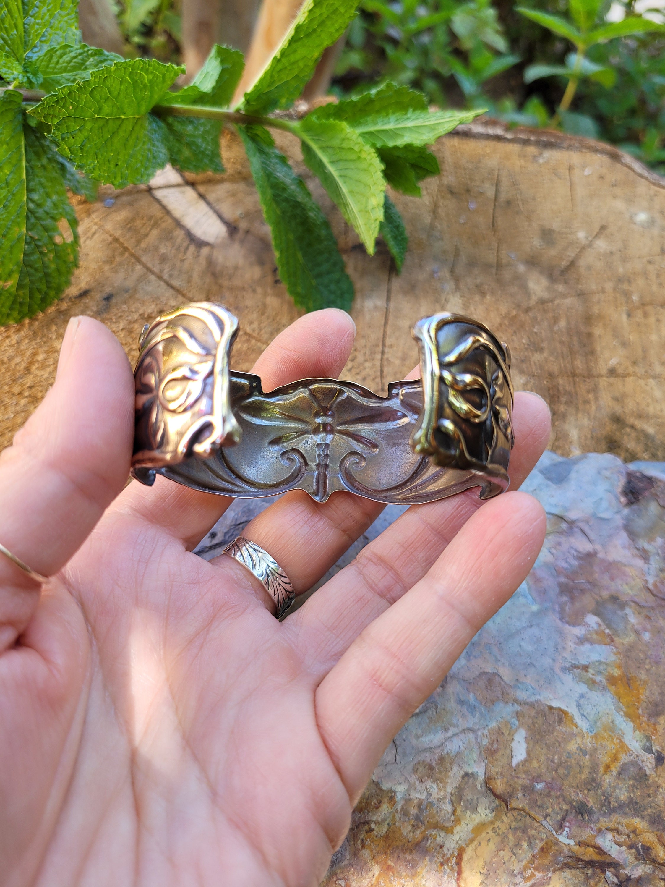 This stunning art nouveau pattern cuff bracelet speaks for itself. Gorgeous swirling flowing pattern wraps around the entire bracelet. I make these from an early design from late 1800's- early 1900's die.