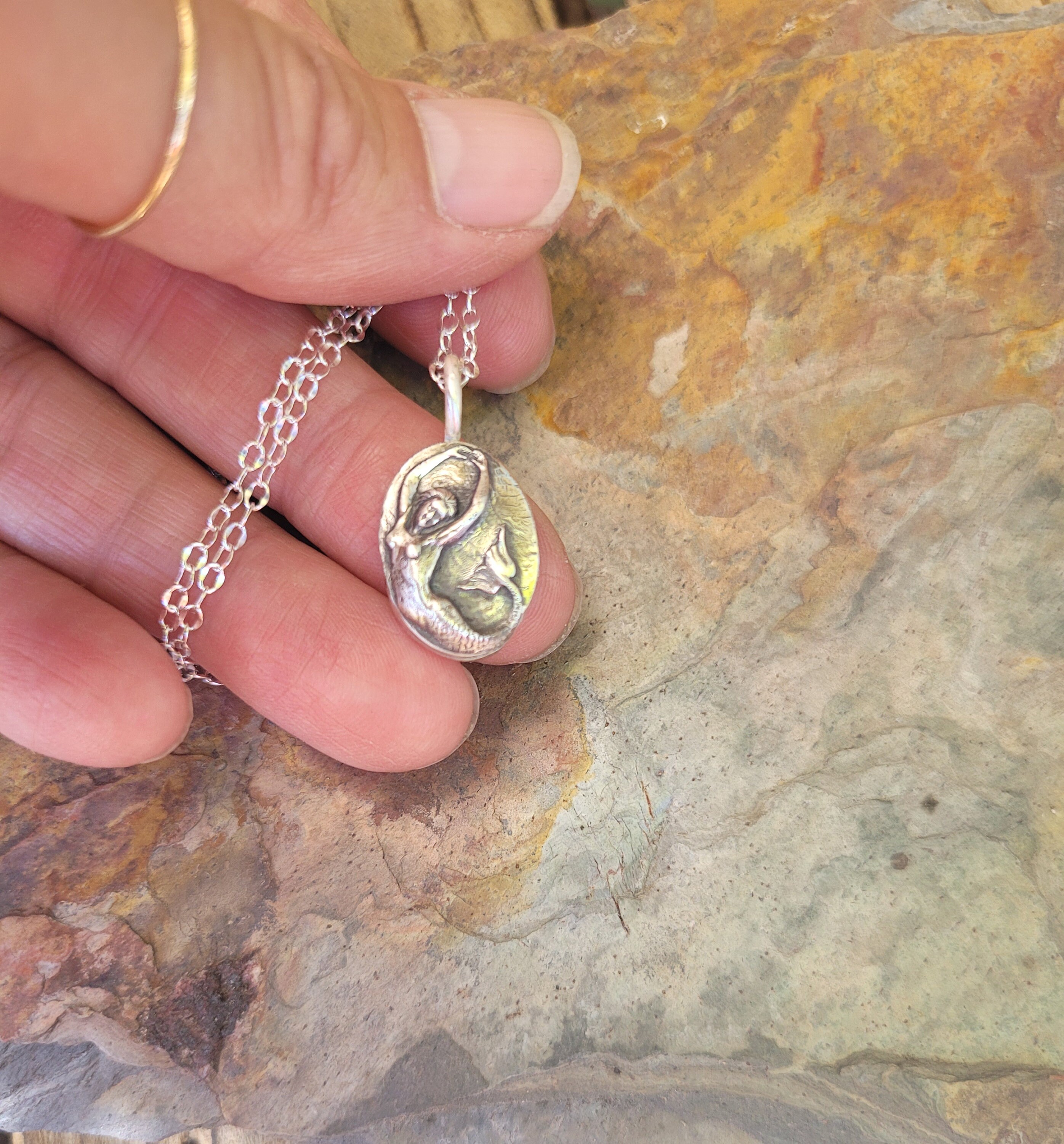 Dainty French mermaid pendant necklace. She's whimsical and feminine. Dainty yet fierce.