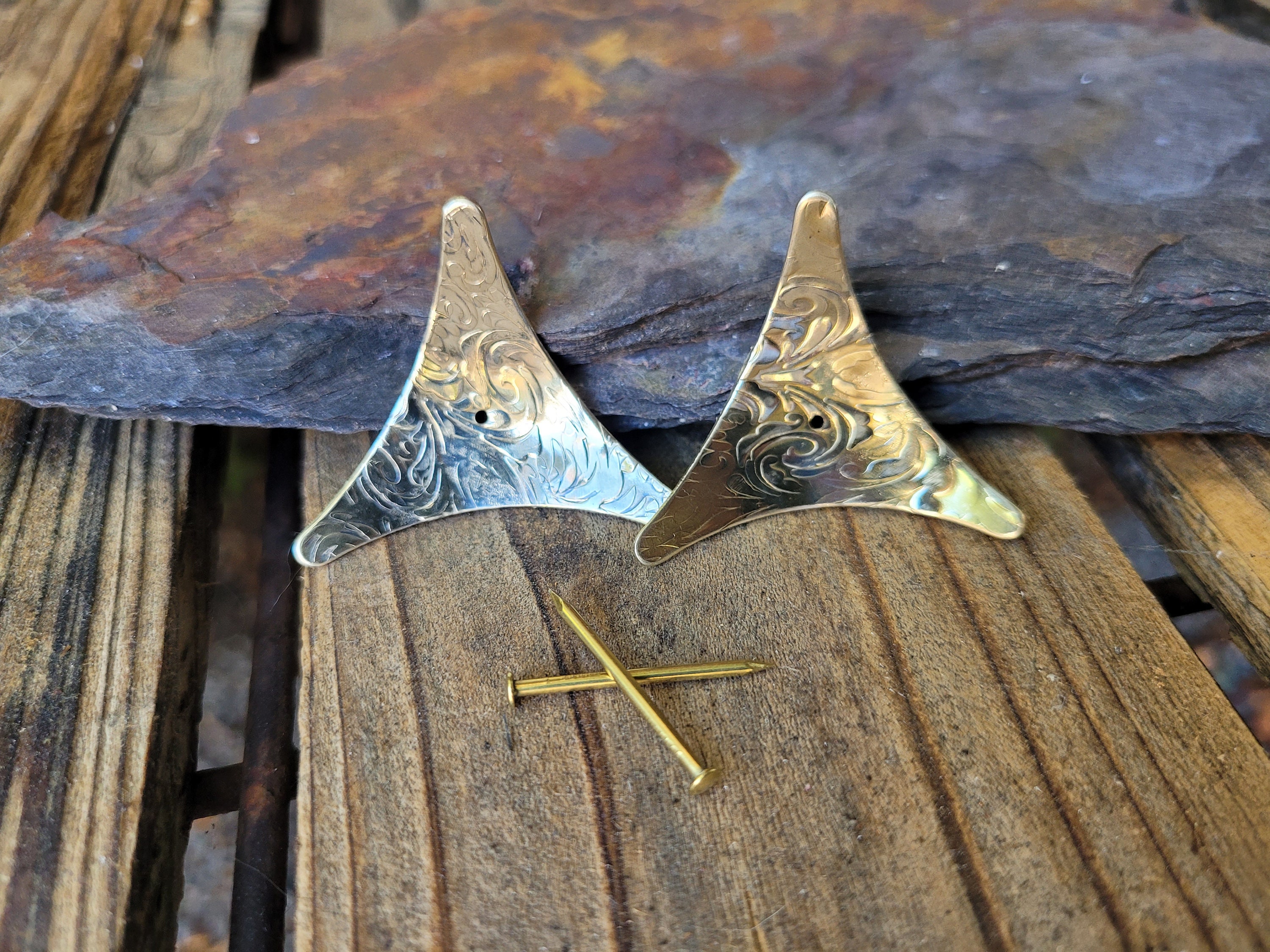 18 gauge solid brass hand cut, stamped, finished,and polished and are 1 3/4 inch long❤️