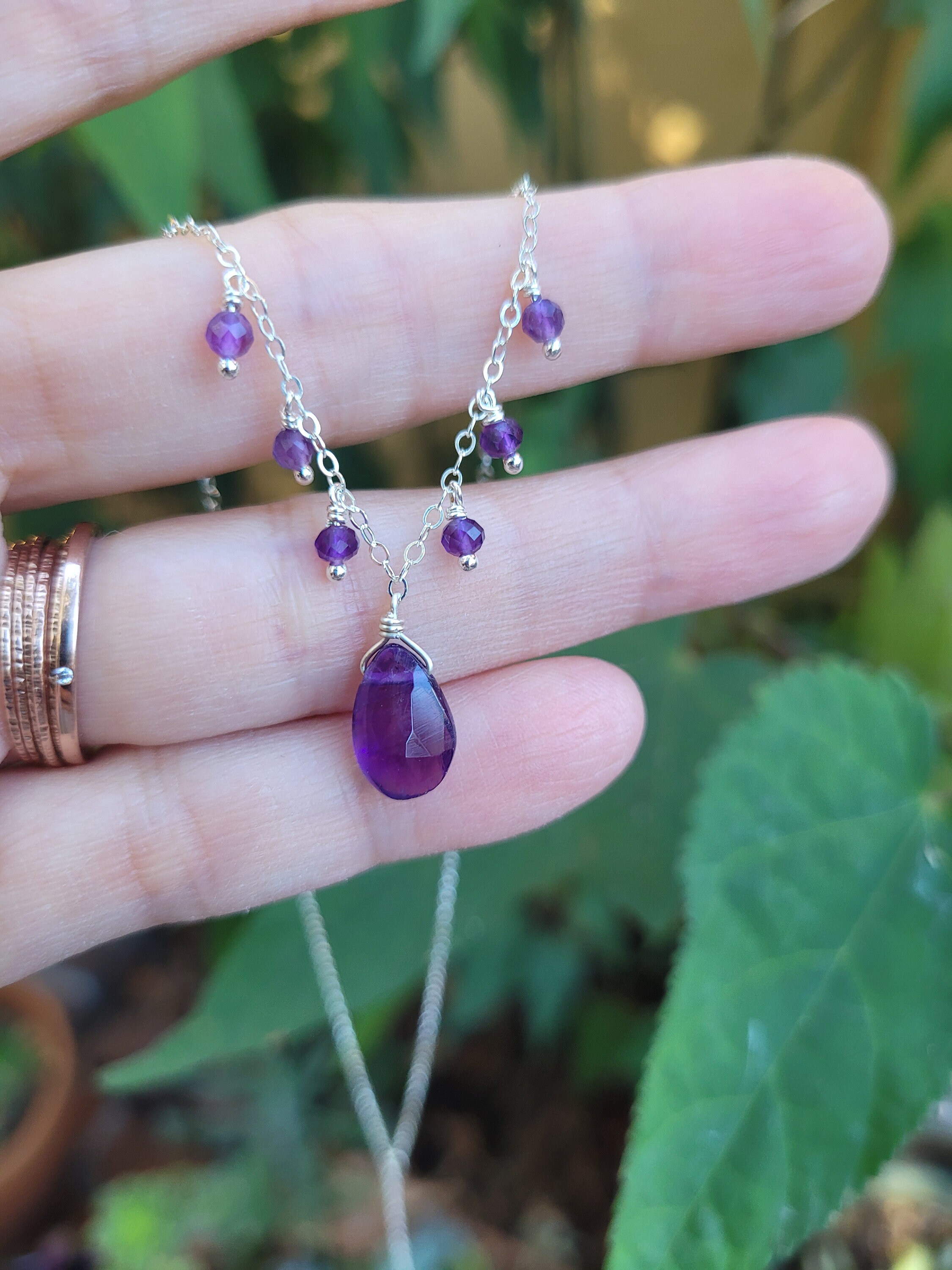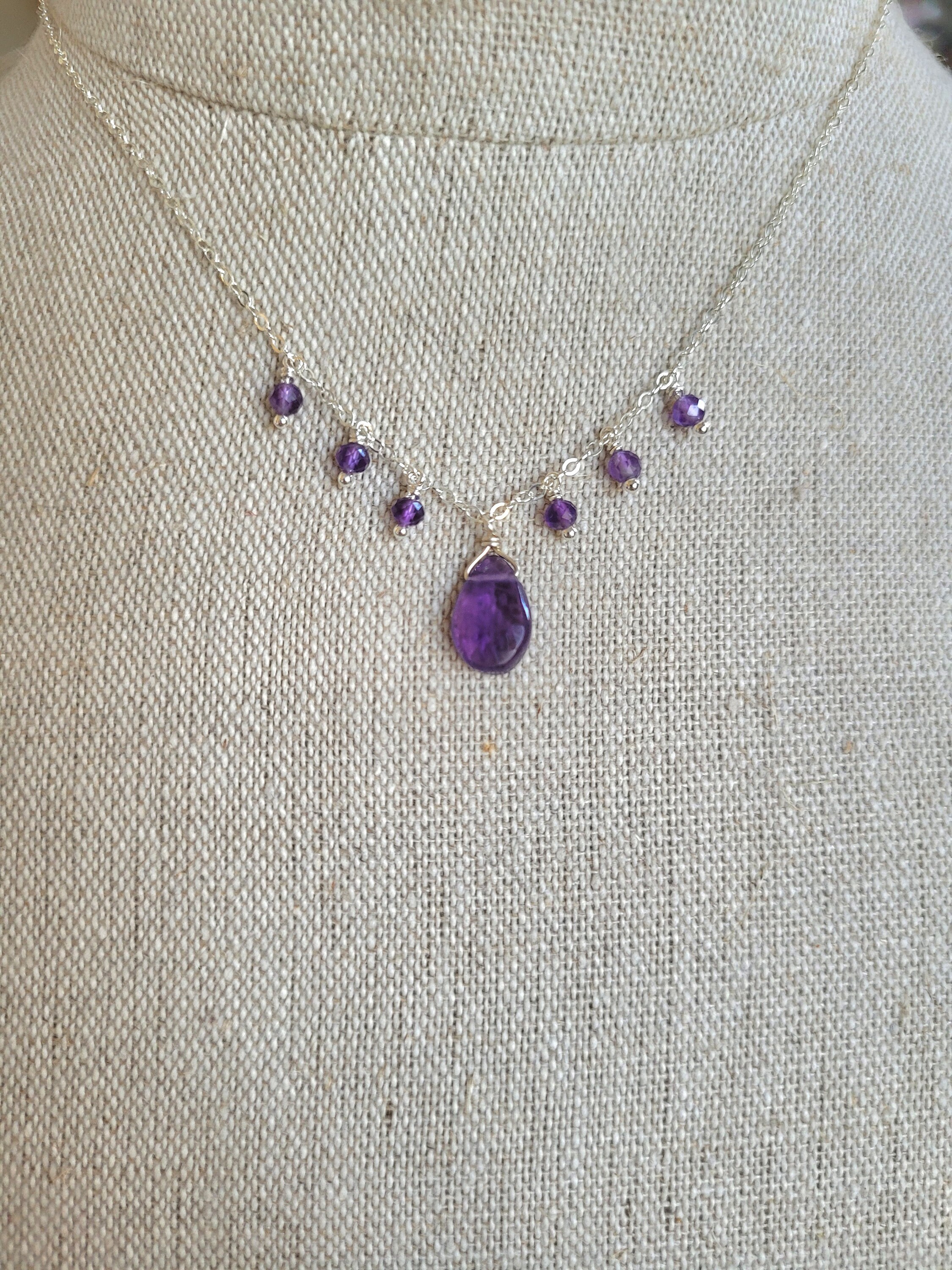 Sweet elegance in purple hand wired necklace. This is demure but still stunning. Real amethyst gemstones
