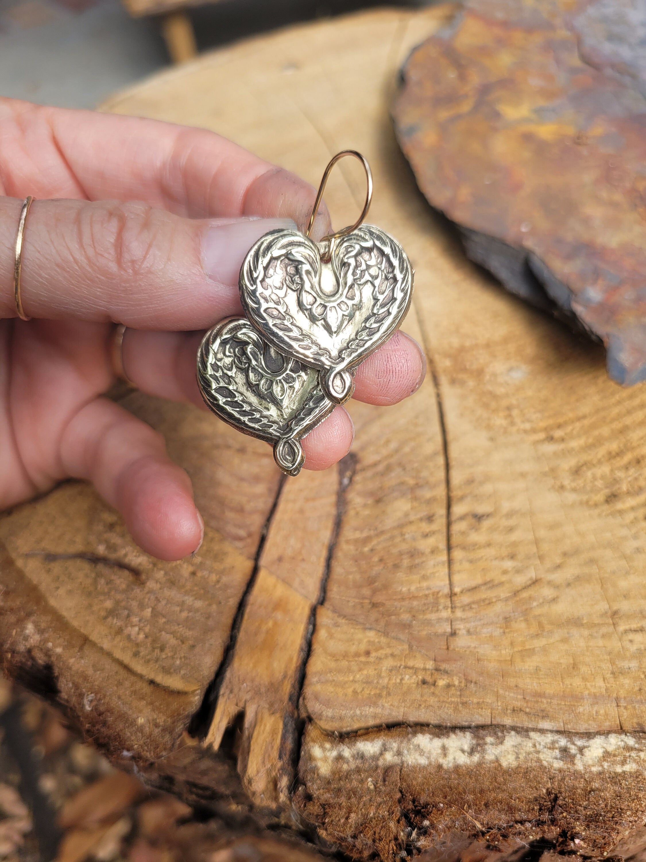 Angelic wing earrings. Stunning angel wigs are made in solid polished brass and