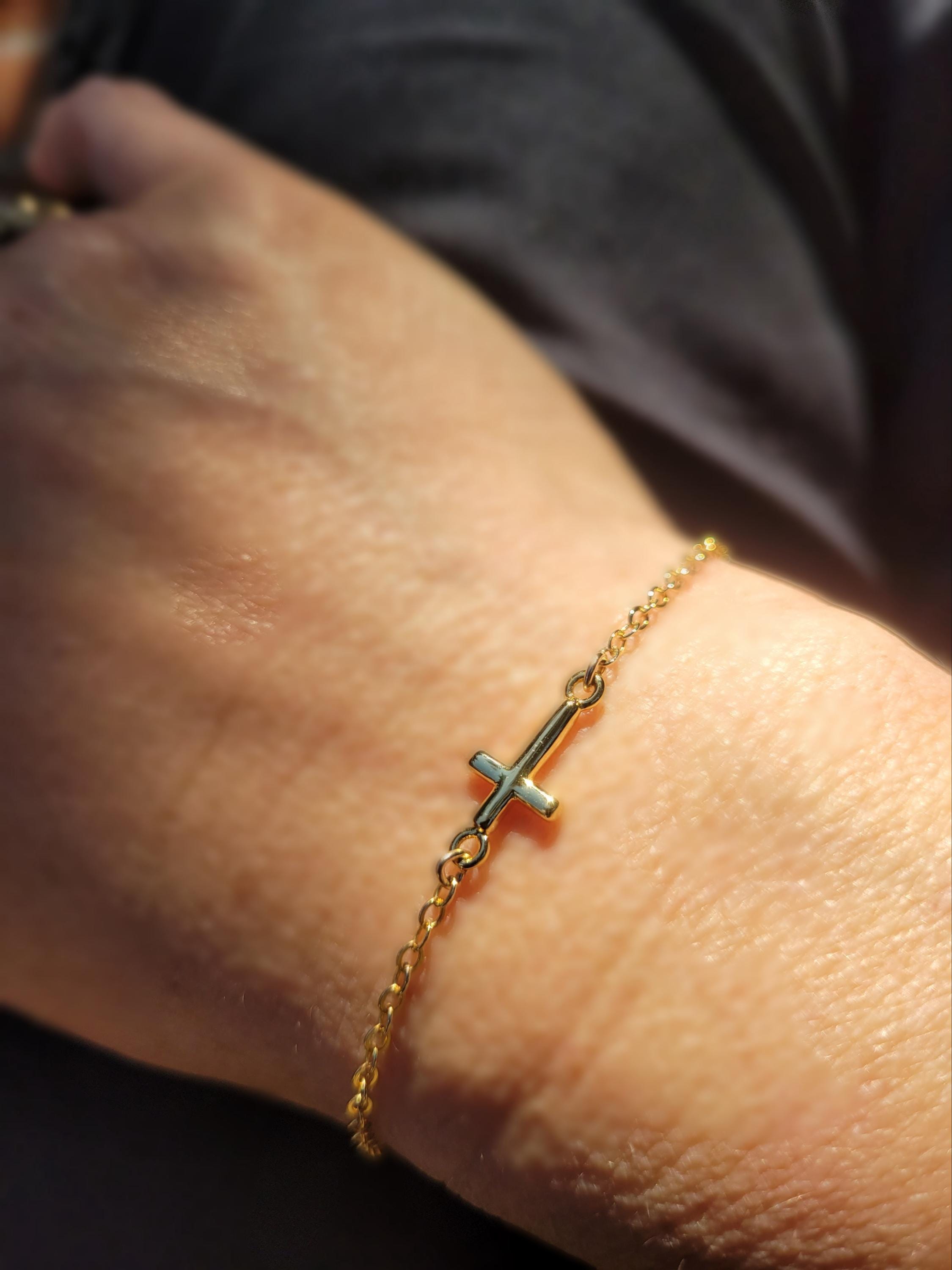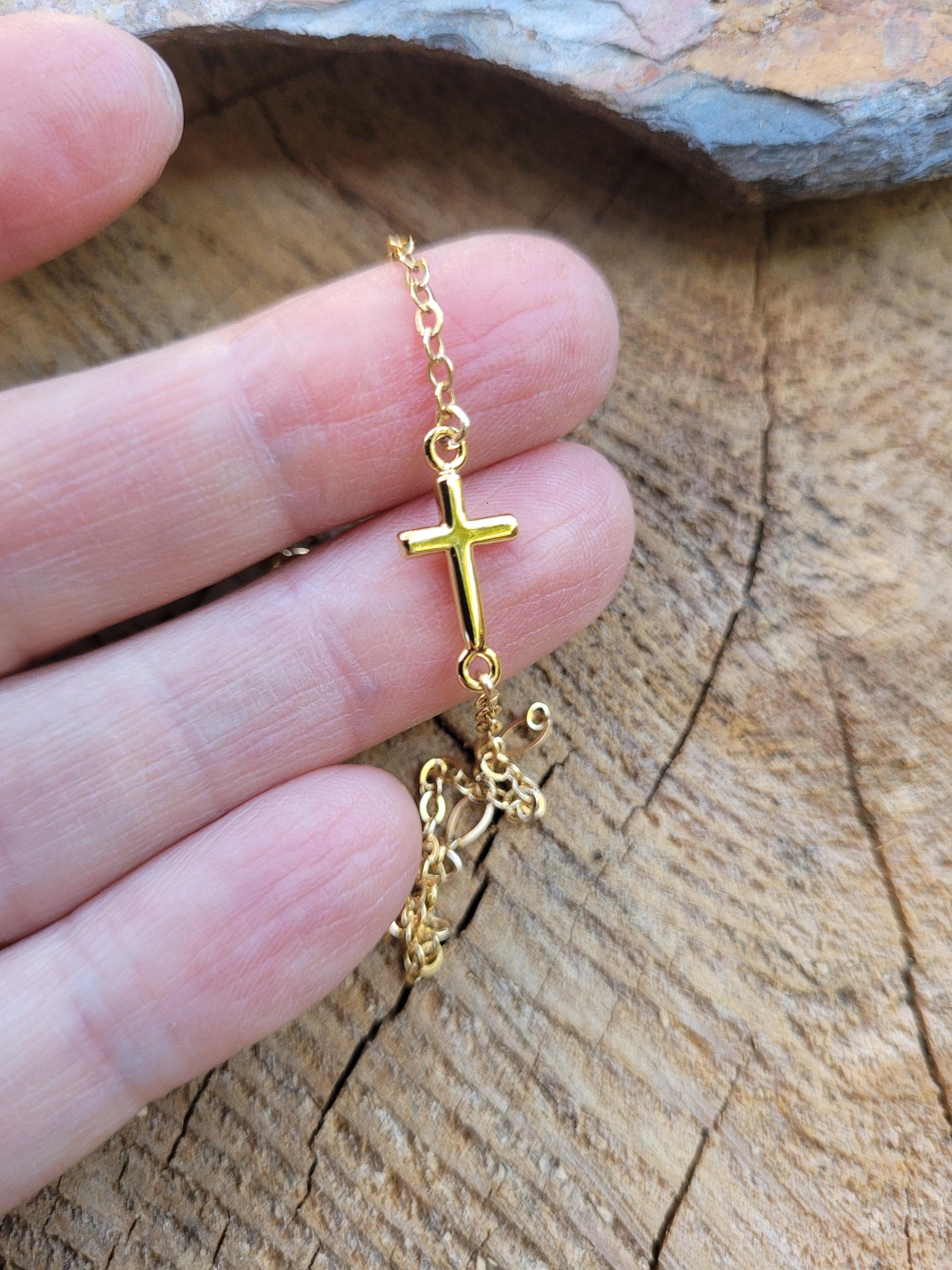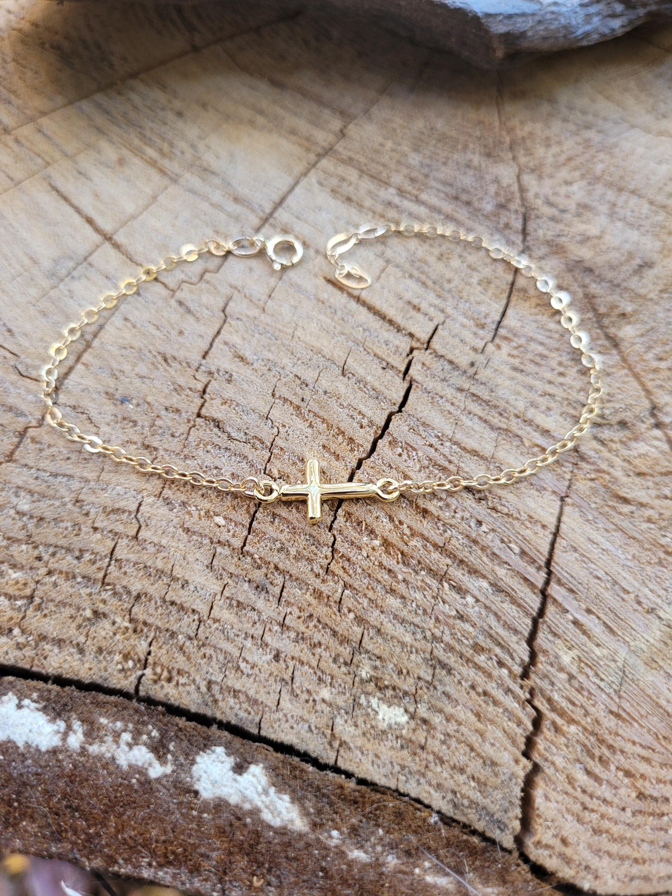 Sweet dainty gold filled cross bracelet. Delicate but sturdy this little cross makes a big statement ❤️