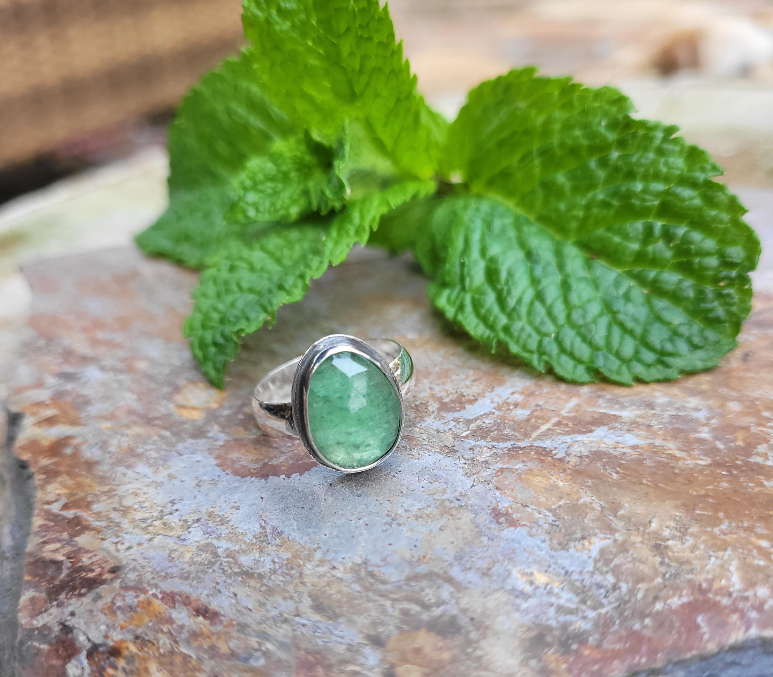 Sweet yet simple green aventurine ring. Faceted with all the shimmer his ring is stunning. I use a wider band so its super comfortable and WON'T SPIN around your finger! Made to order and all have made by Me! These are wonderful quality stones I have made and ypu won't be disappointed !