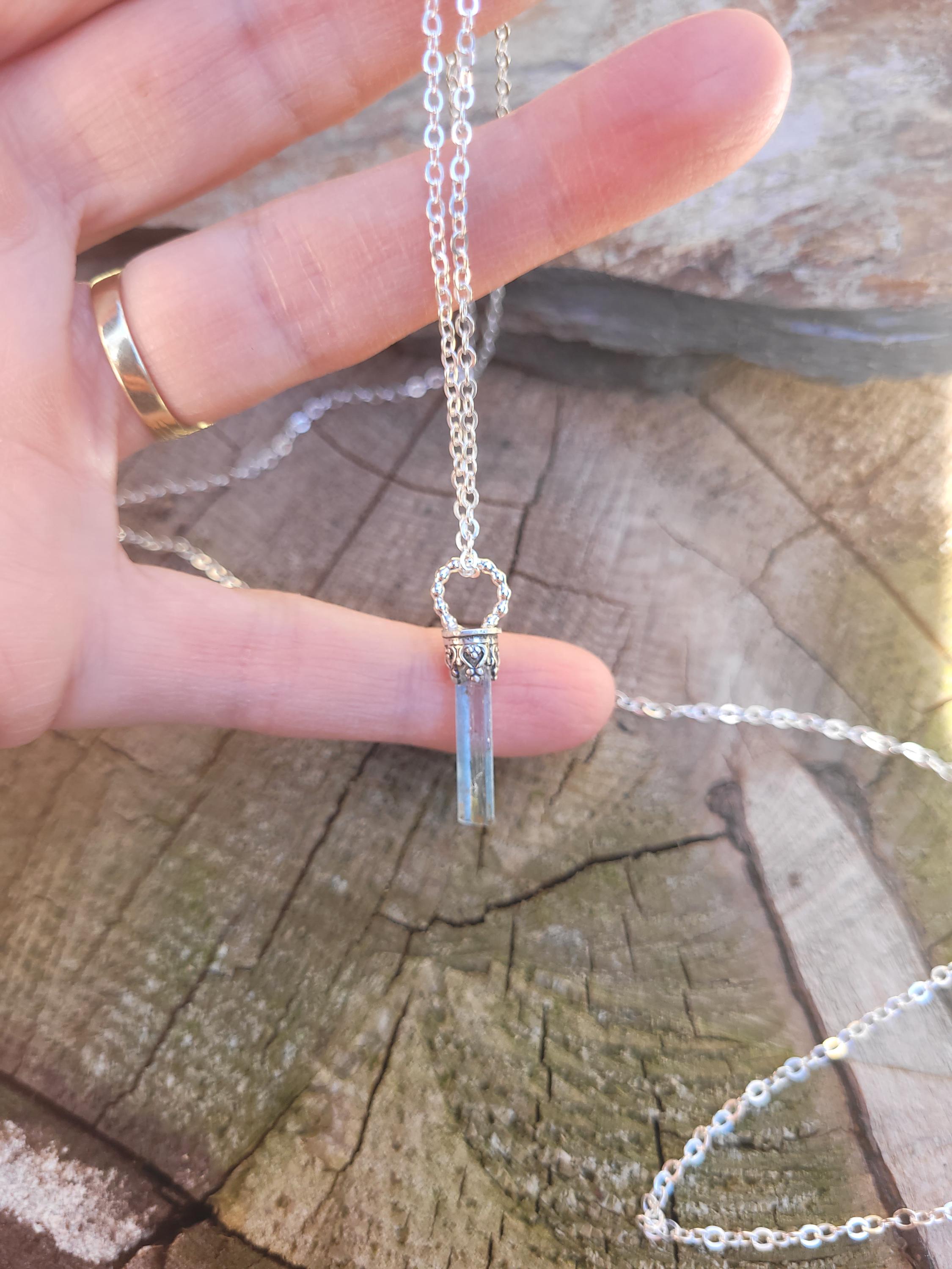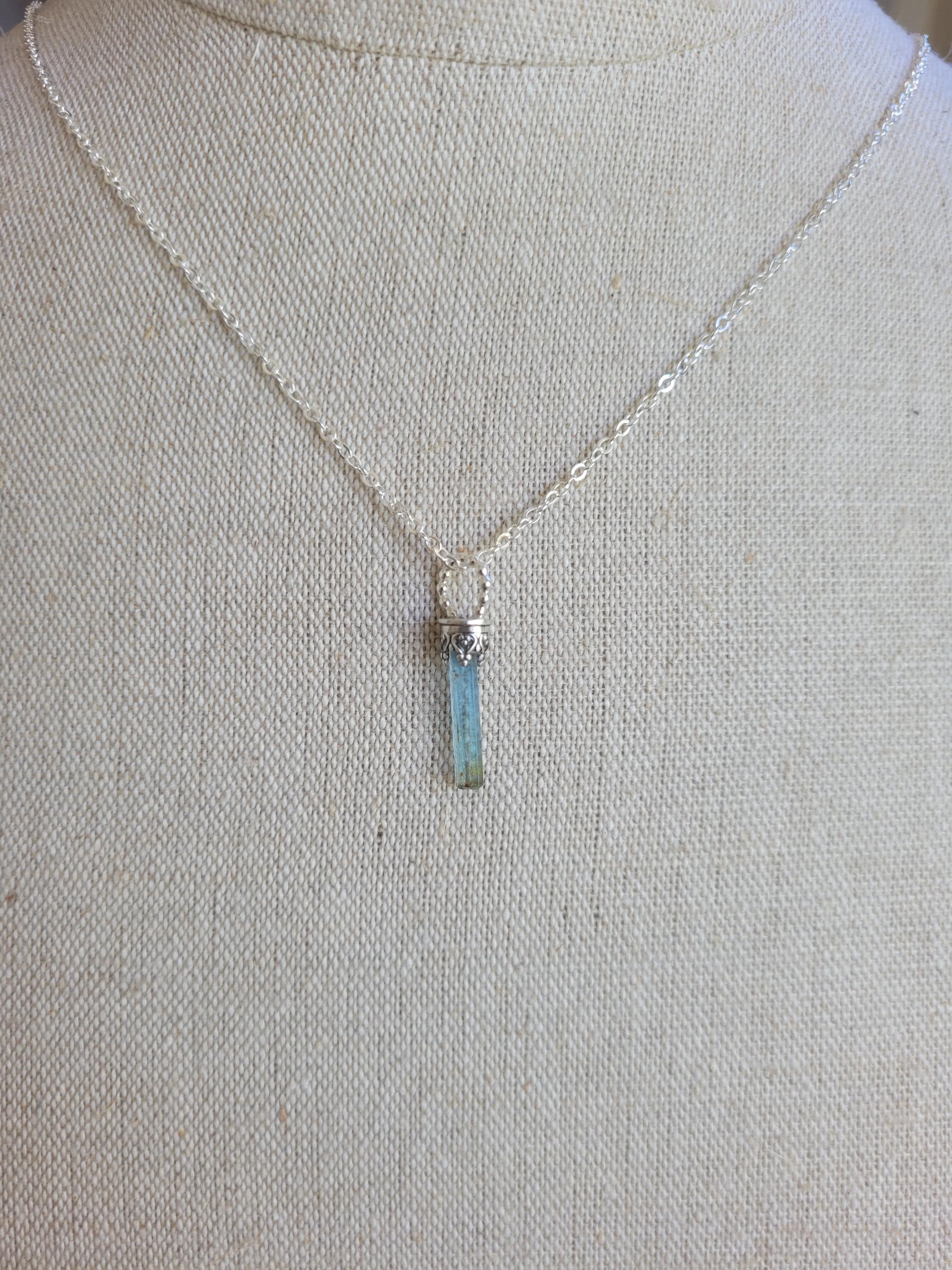 Hand crafted heart bezel wrapped around the stunning stick aquamarine point