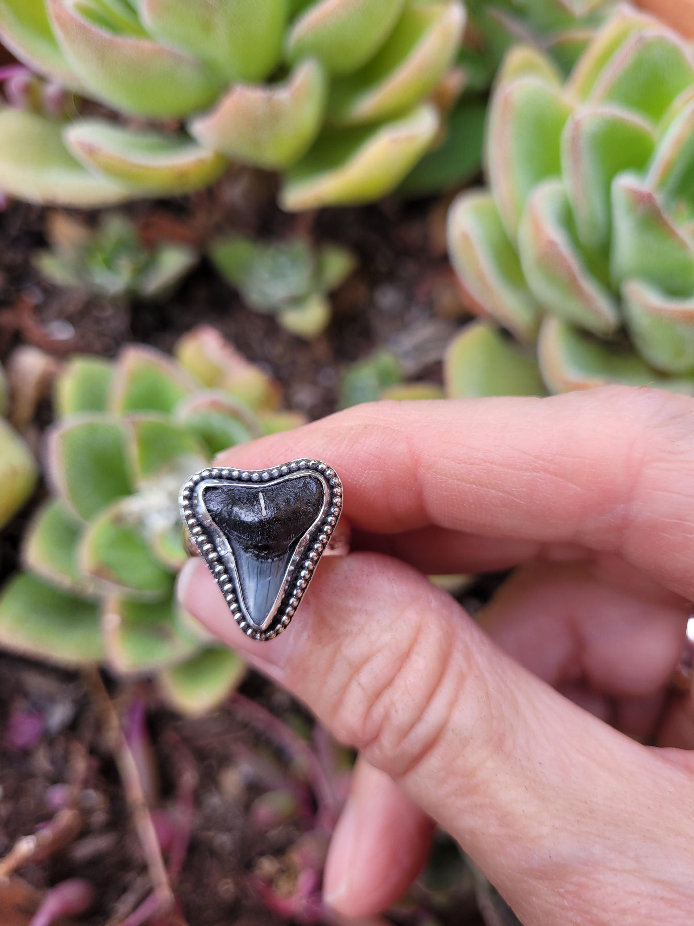 Ethically sourced shark tooth that has been found on the ocean floor.