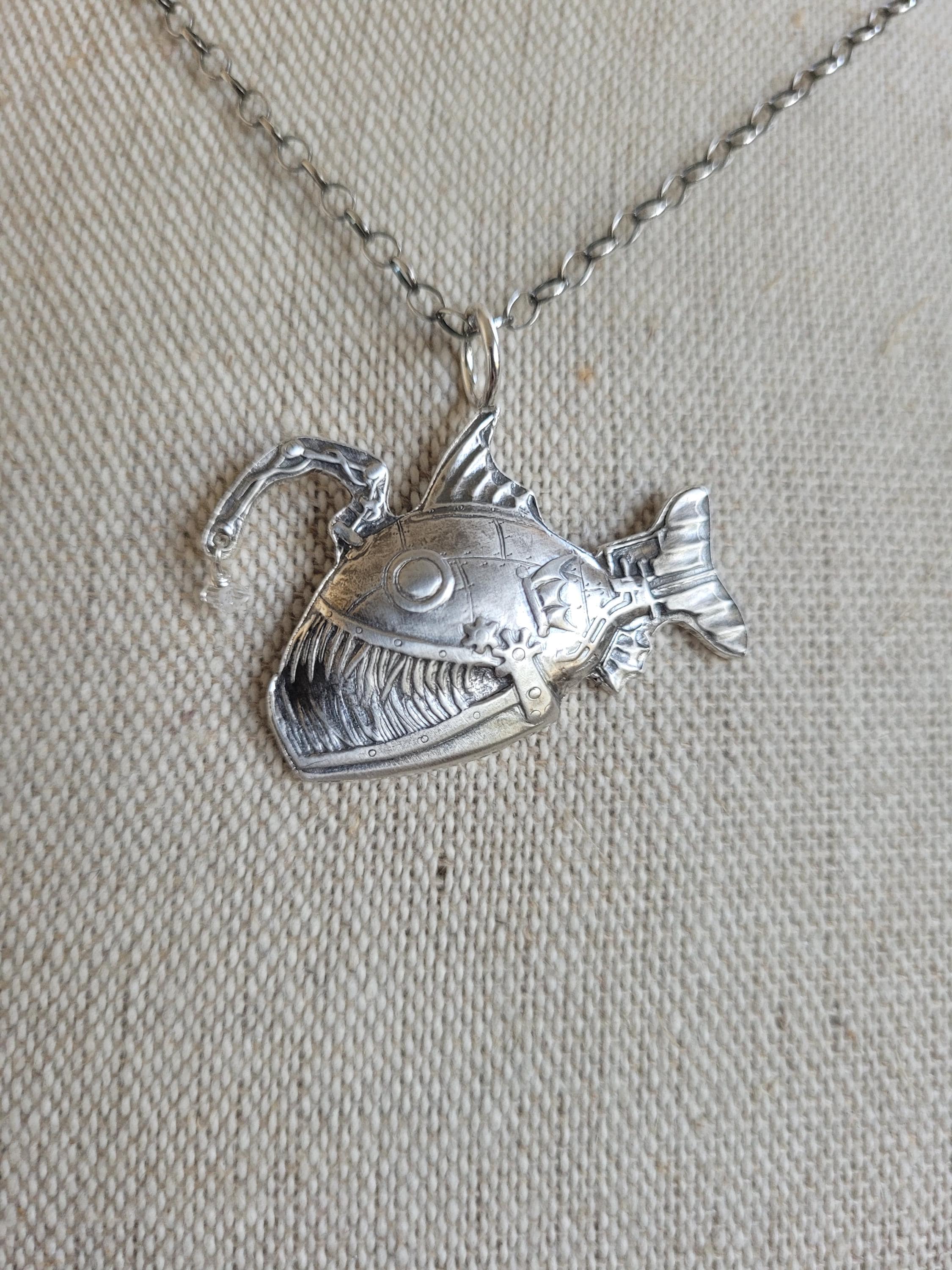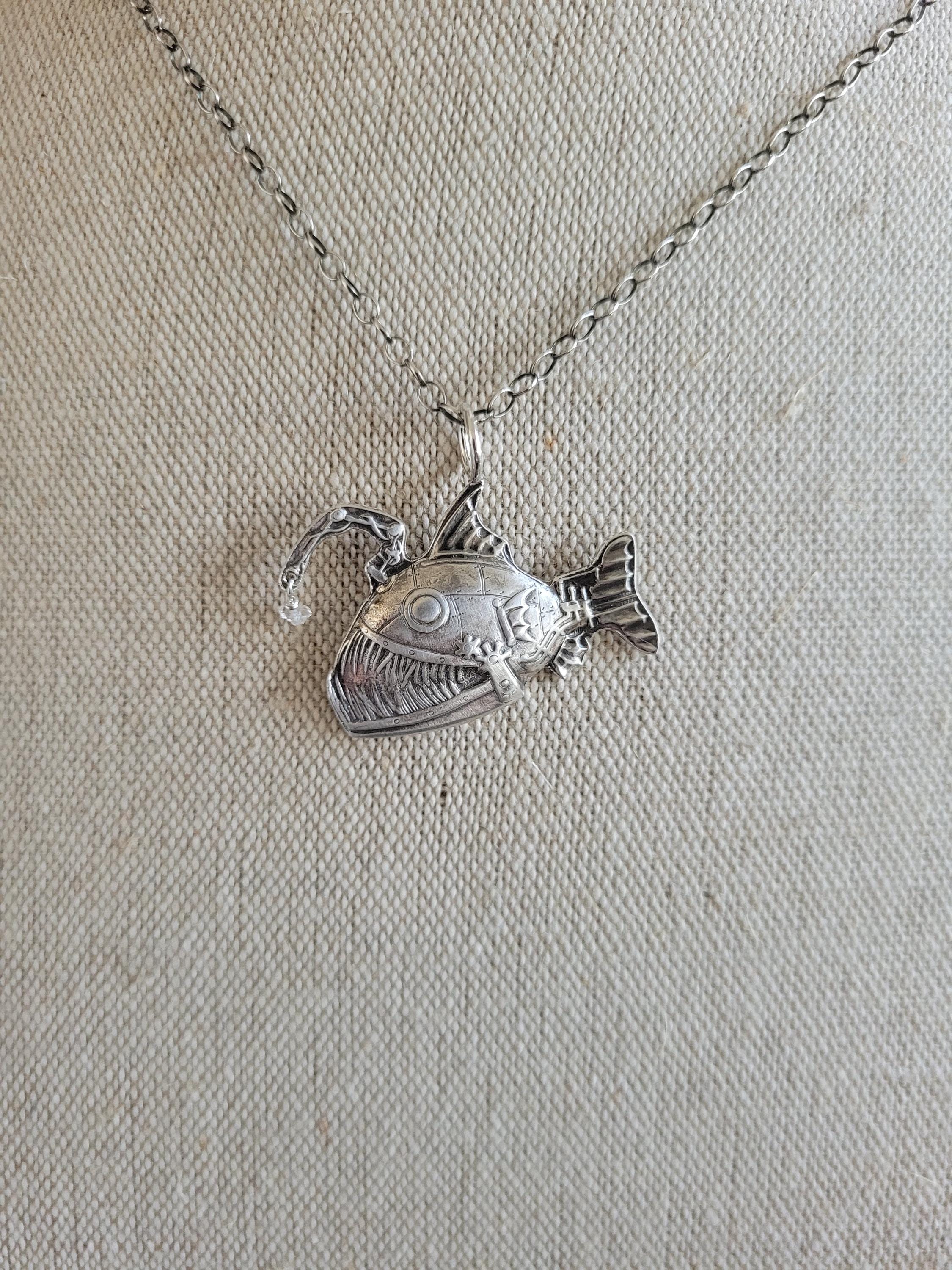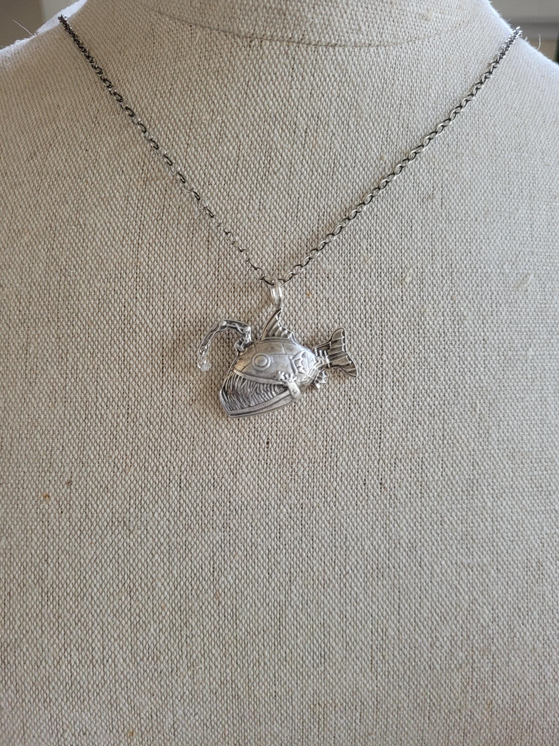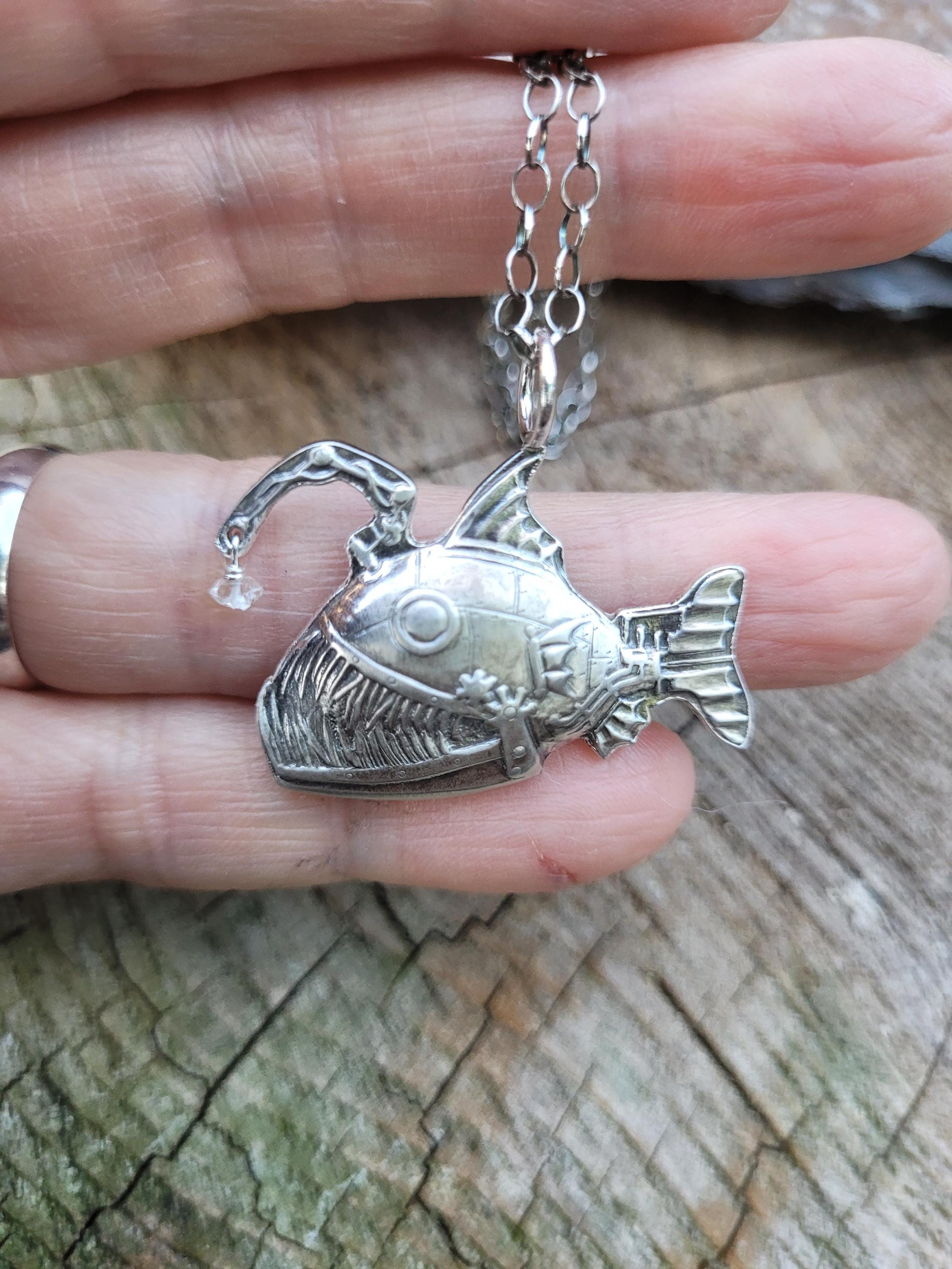 This is such a fun pendant to make! A little Herkimer diamond dangles to mimic this little guy's flashing light.