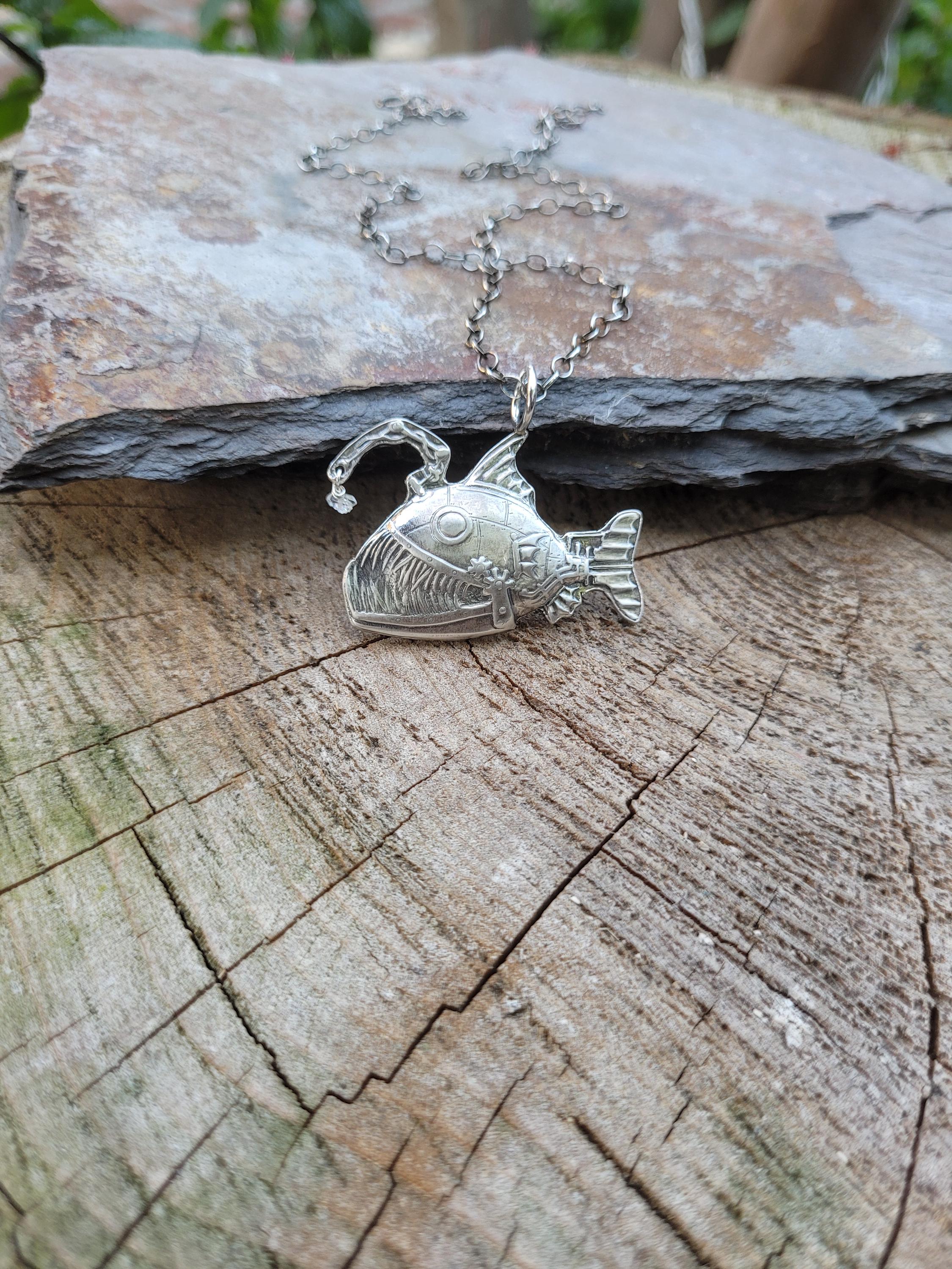 This is approx 1 inch long from chain and 1.5 inches wide. Available as "pendant only" or on a chain