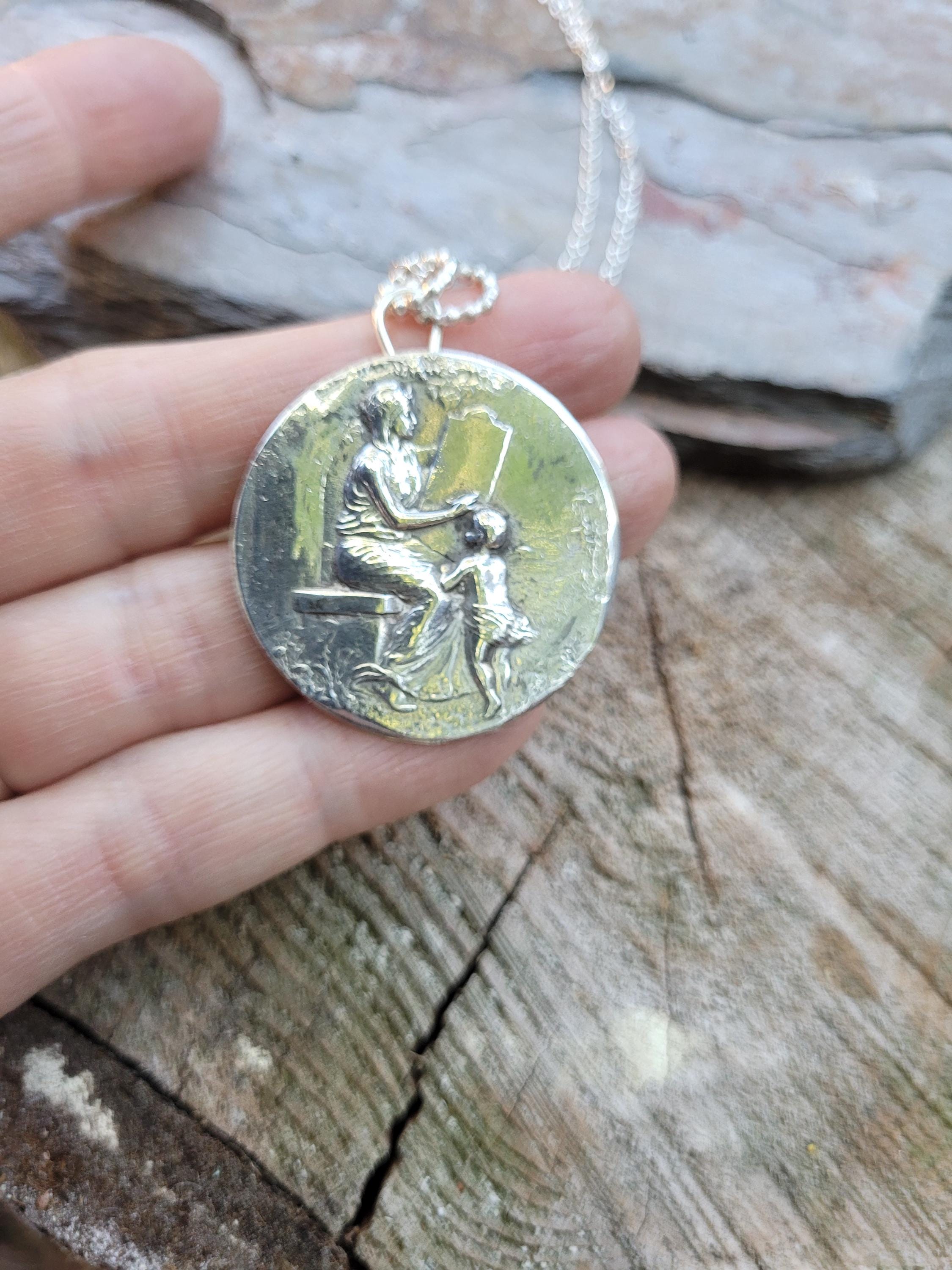 Art nouveau French pendant necklace. She's whimsical and feminine as she frolicks through the vines
