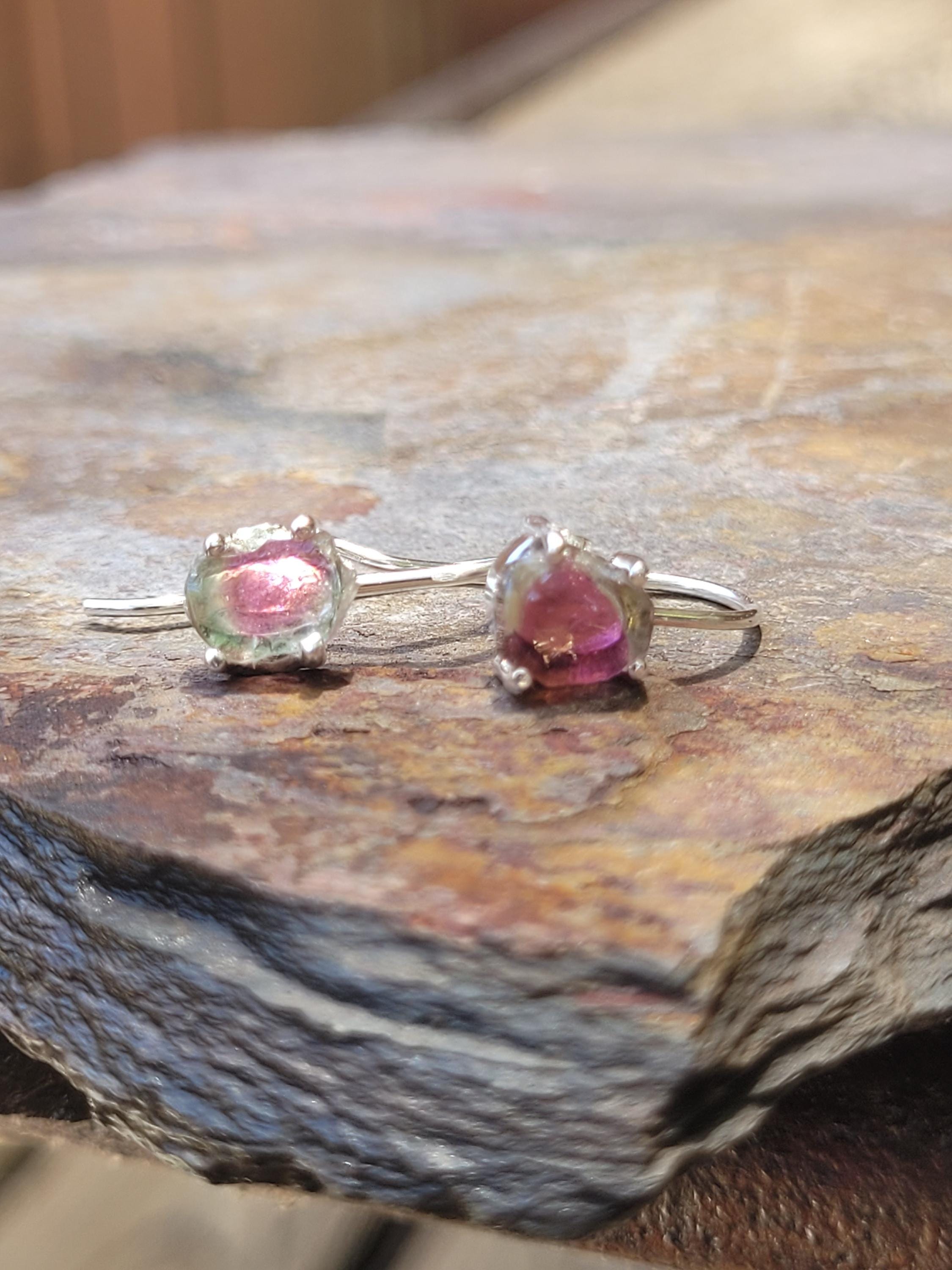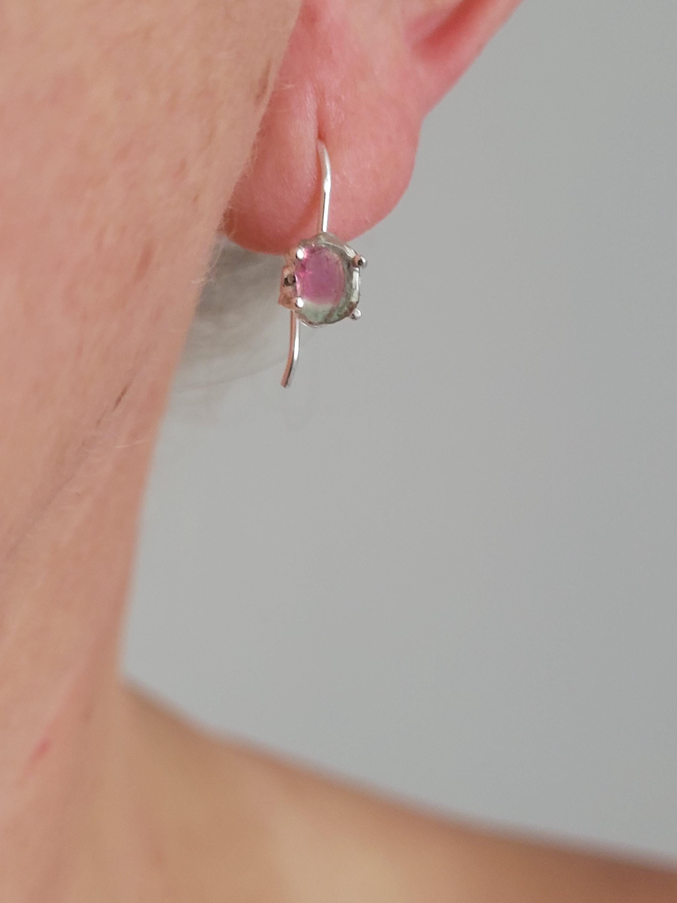 Sweet dainty sterling silver watermelon tourmaline earrings.